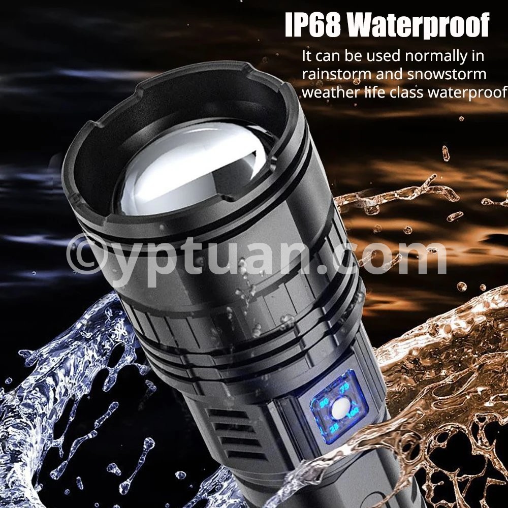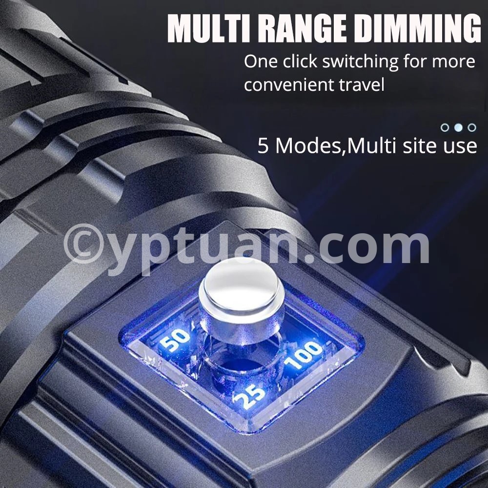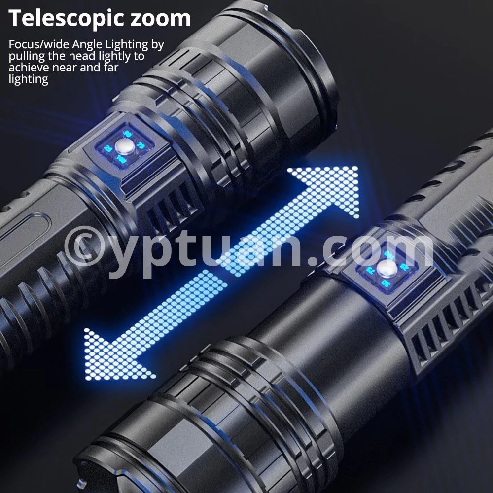 1.【High LUMENS SUPER BRIGHT FLASHLIGHT】This unique high lumen LED rechargeable flashlight can be illuminated on both front and back ends. Unlike other high lumen flashlights with exaggerated values, this led flashlight has a true maximum of 10000 lumens, and the ultra-wide beam can easily illuminate Brighten the whole room and backyard and even the football field, the farthest illumination distance is 3280ft, it can be widely used in emergencies, camping, night hiking, fishing and hunting.