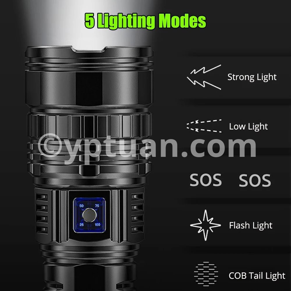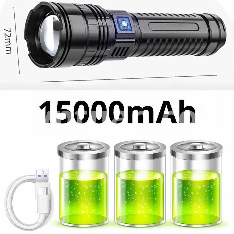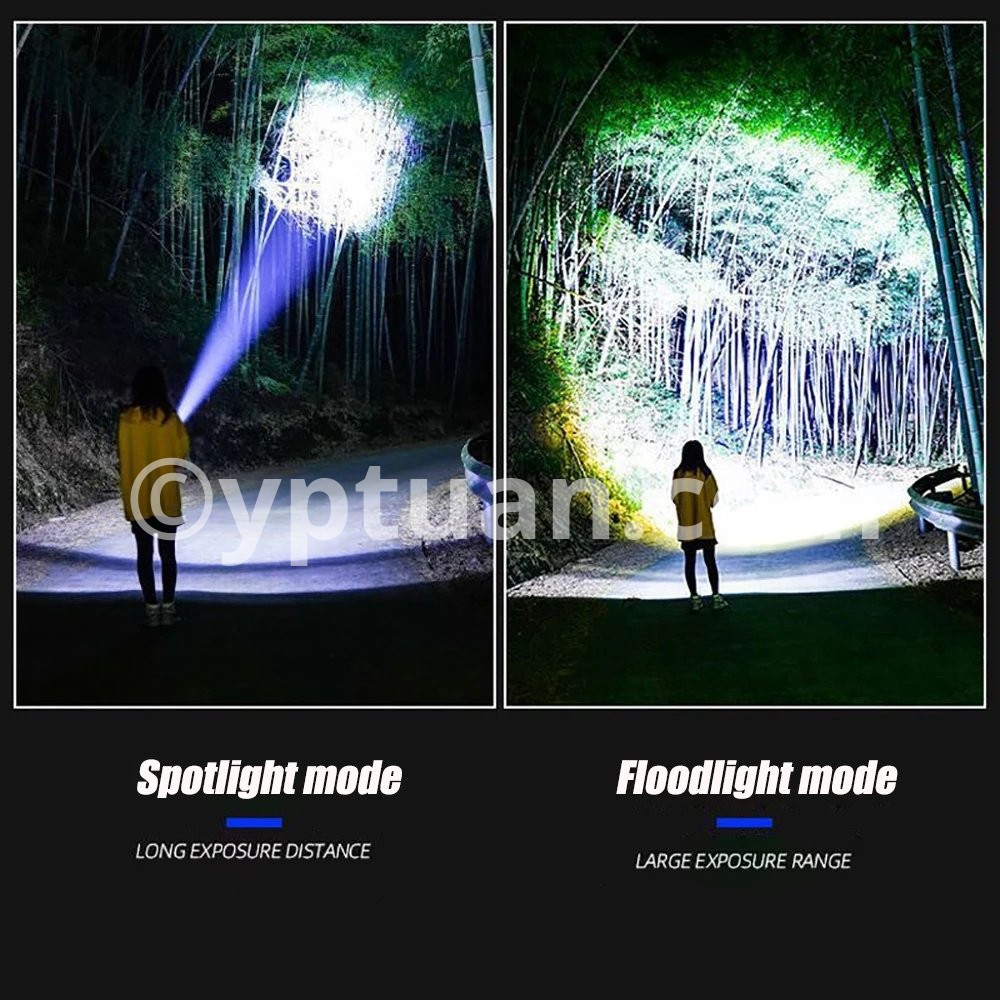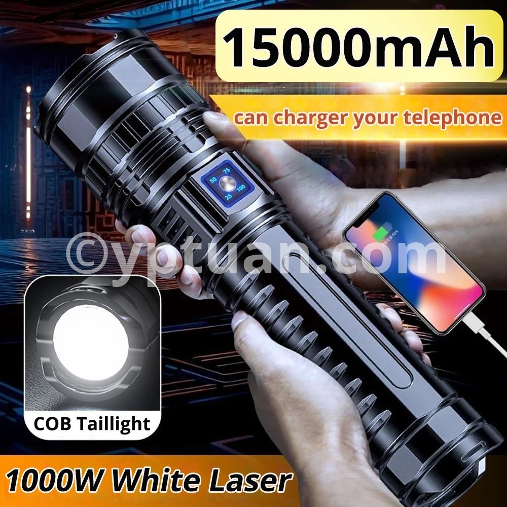 1000W Built-in Battery Flash Light Emergency Spotlights 9km 990000000LM Most Powerful Led Flashlights Tactical Torch 15000mah