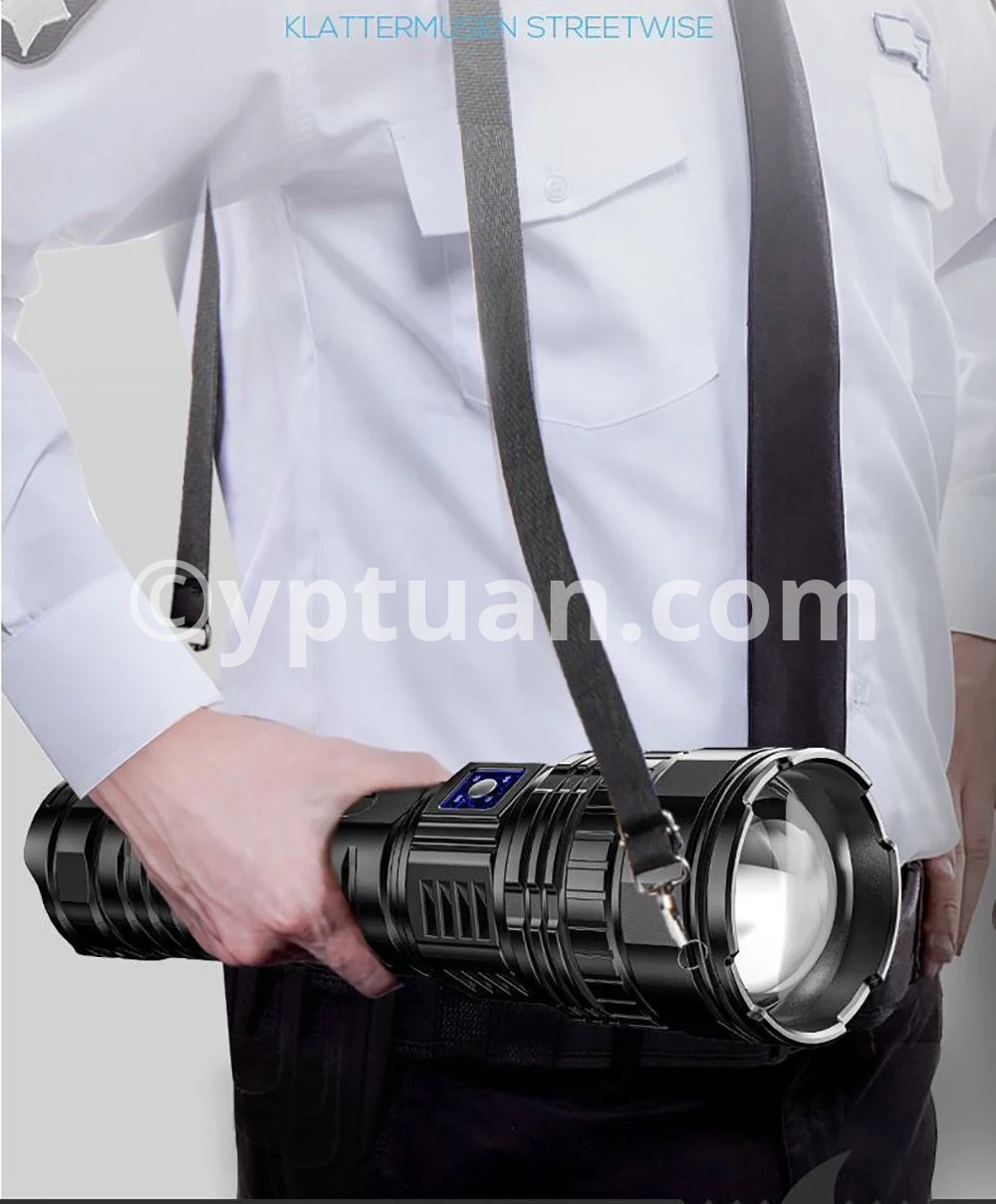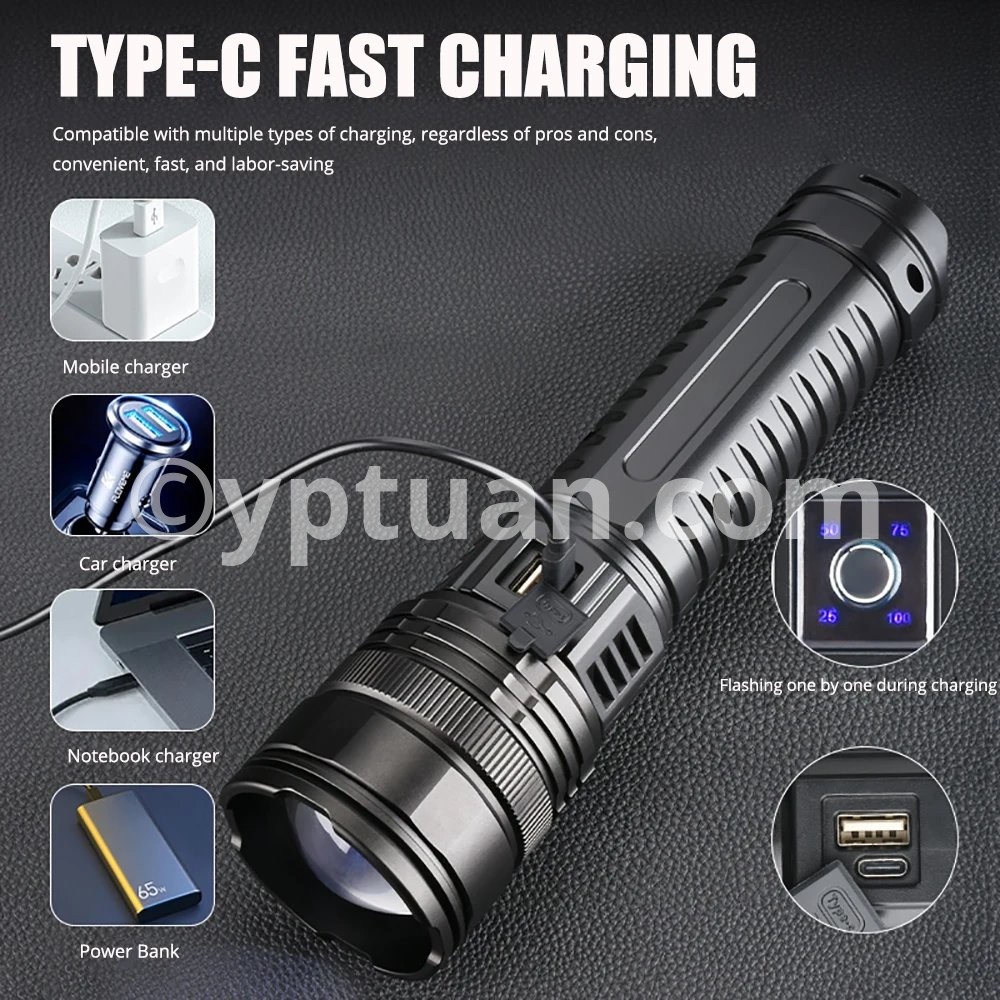 2.【UPGRADED USE TIME & POWER BANK & DIGITAL DISPLAY】The rechargeable flashlight has been newly upgraded to shorten the charging time and prolong the service life, and can be used continuously for 12 hours. The unique digital display of battery percentage also lets you no longer have to worry about the remaining battery. The built-in large-capacity battery and USB smart fast charging also make charging faster, and you can use it as a power bank to charge your phone for emergencies.