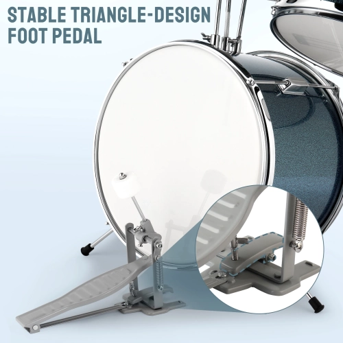 14"x10" 3-Pieces Junior Kids Drum Set Kit With Pedal, Drum Stick, Wrench and Drum Stool