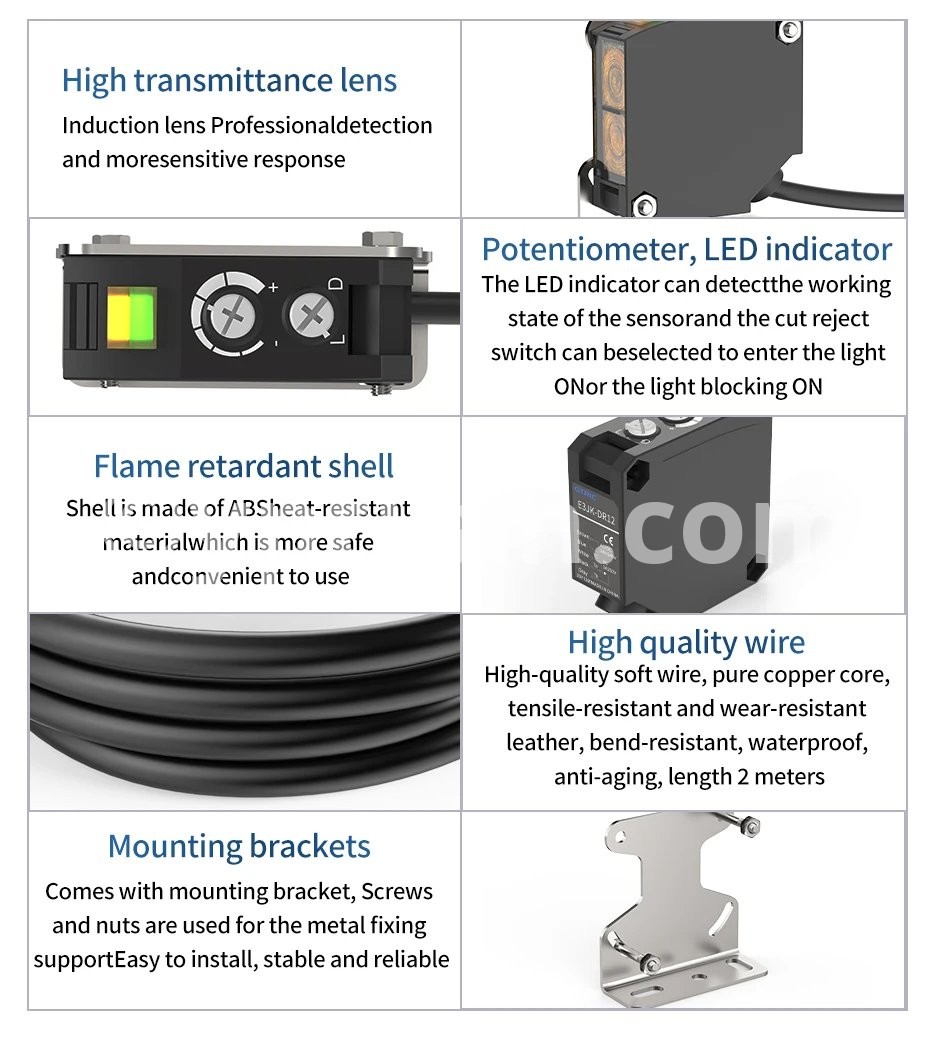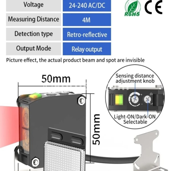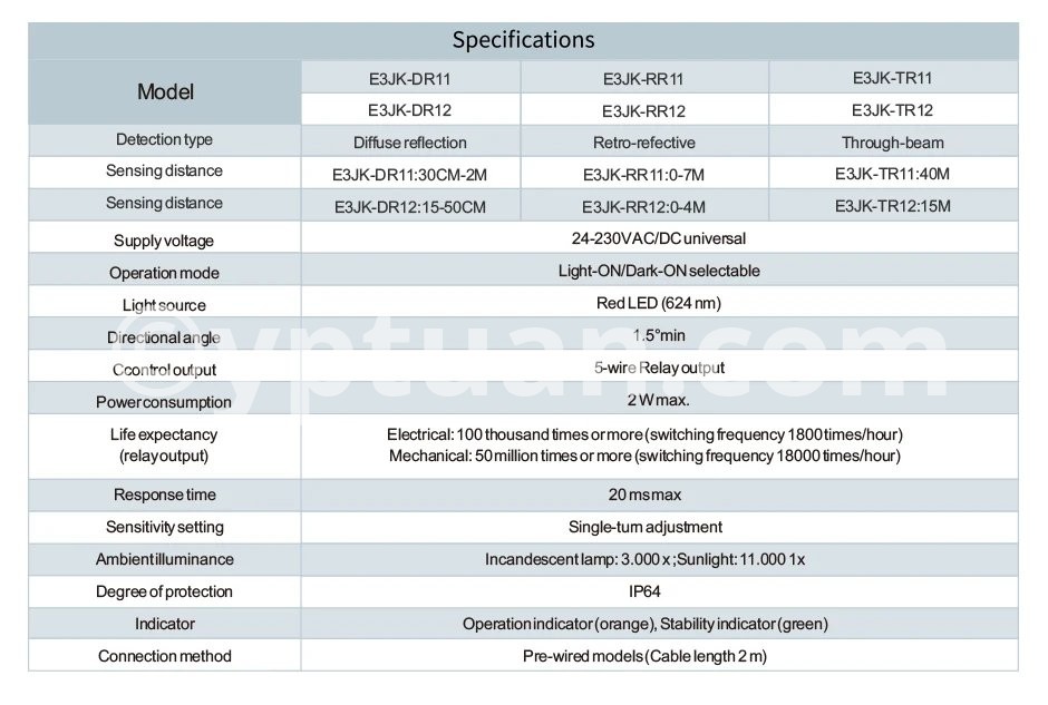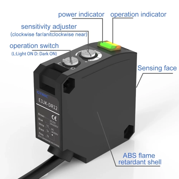 GTRIC Photoelectric Sensor E3JK-RR12 Retro-reflective 24-240V DC/AC Universal Relay Output Square Optical Photoelectric Switch