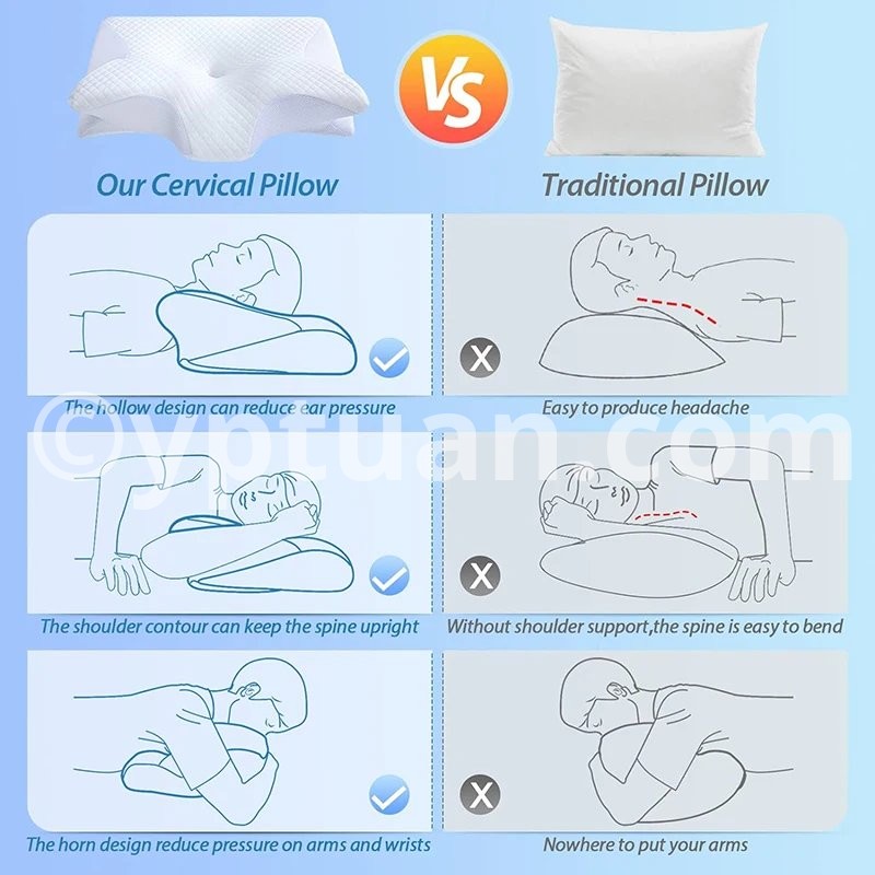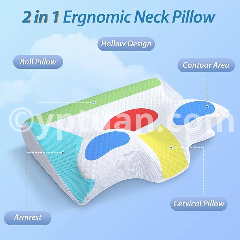 1pc Memory Foam Cervical Pillow, 2 in 1 Ergonomic Contour Orthopedic Pillow for Neck Pain, Contoured Support Pillows,Neck Pillow
