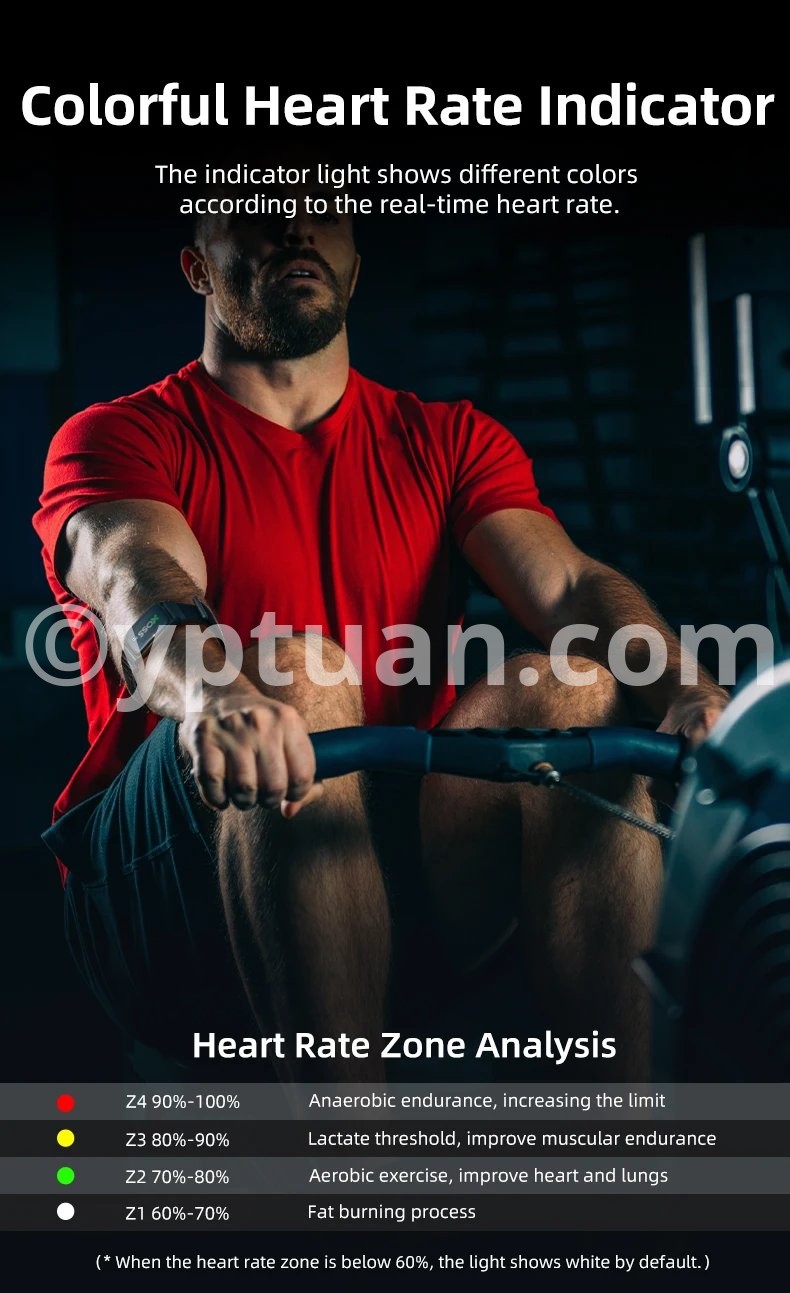 The indicator light shows different colors according to the real-time heart rate.