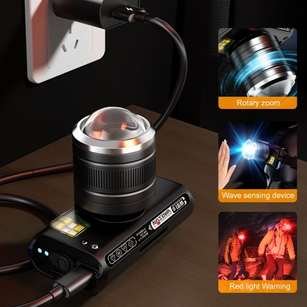 WARSUN W91S Rechargeable LED Headlamp 800Lm Bright Rotary Zoom Wave Sensor IP55 Waterproof