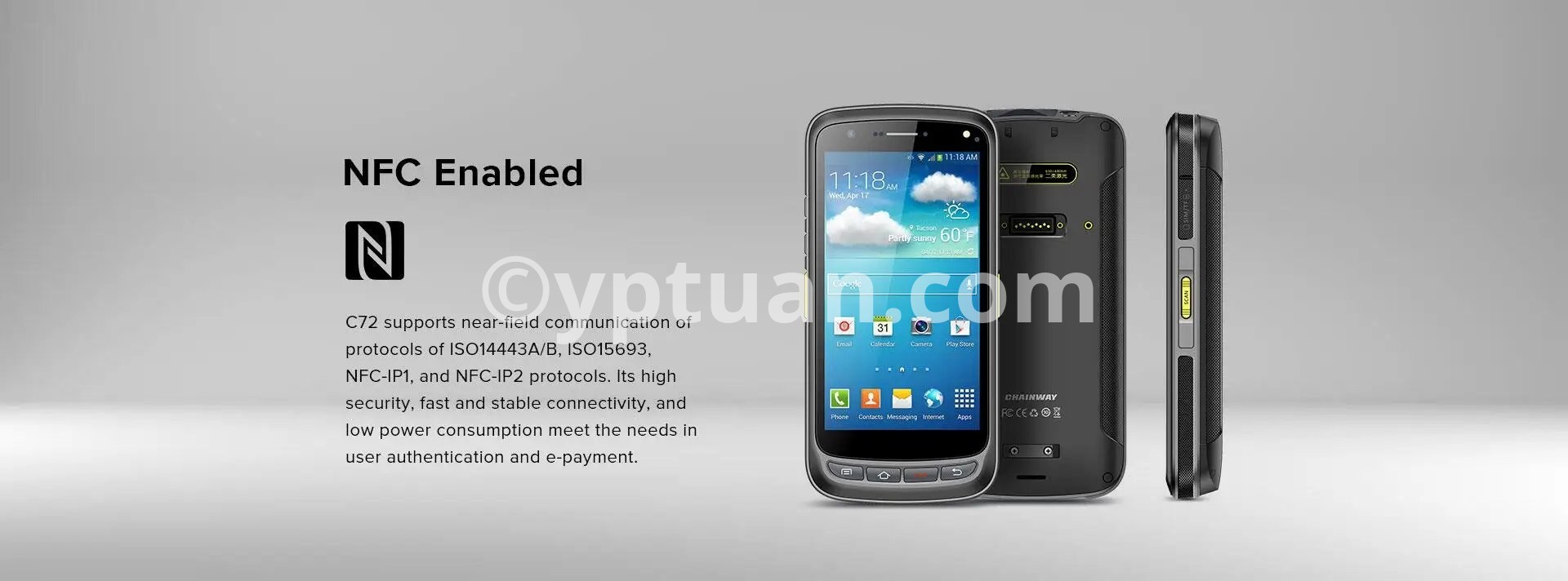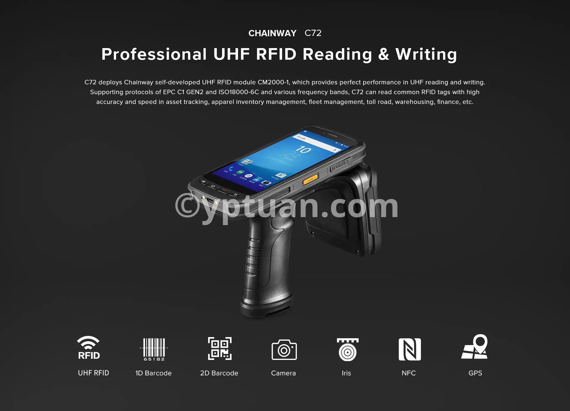 UHFRFIDReaderPDA840-960MhzAndroid13HandheldTerminalBarcodeScannerNFC4GB64GBPistolGripDataCollectorChainwayC72