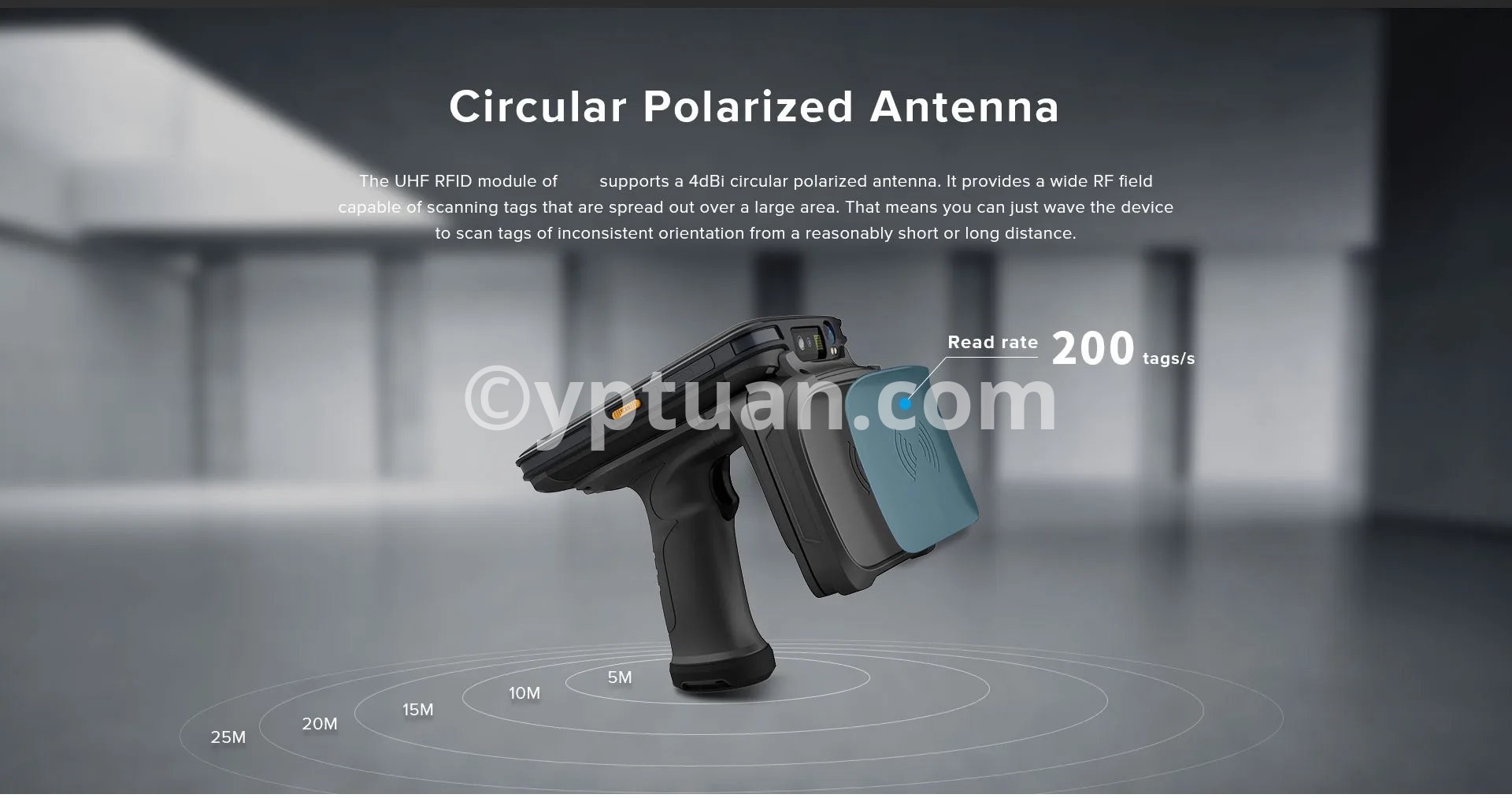 Fastest Read Rate 900+ tags/sec (circular polarization)