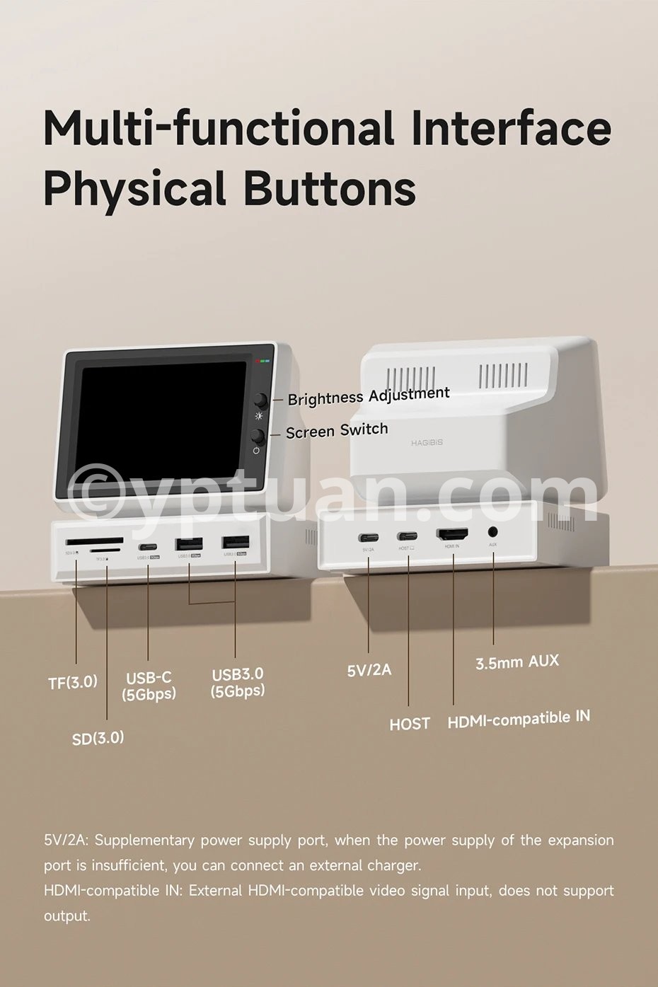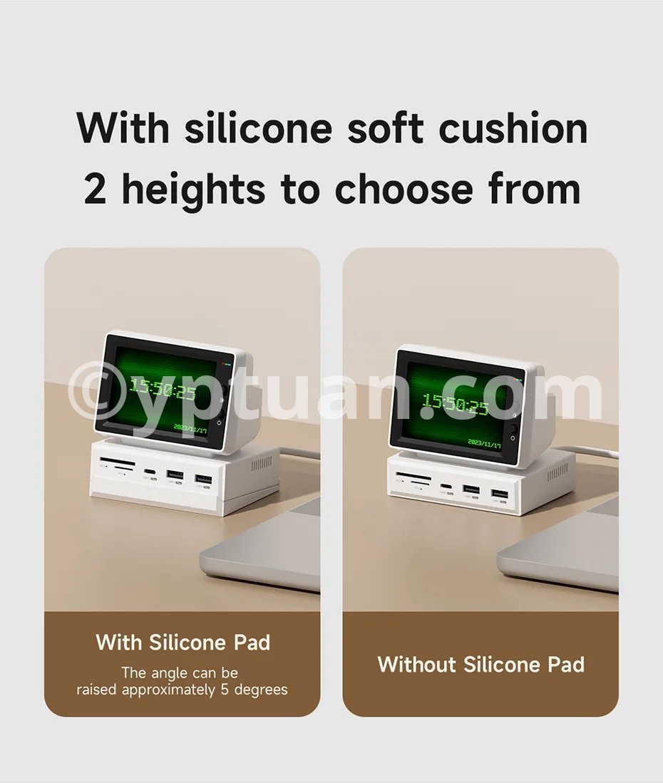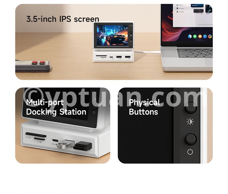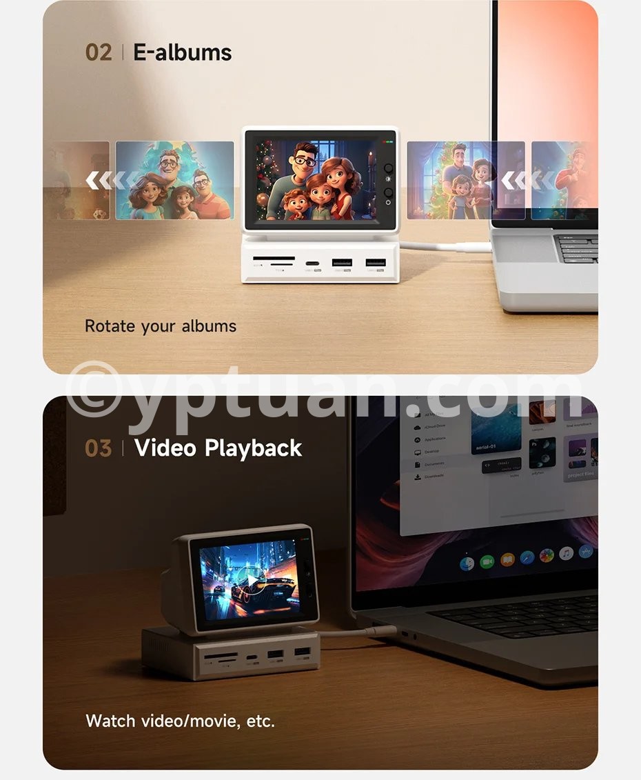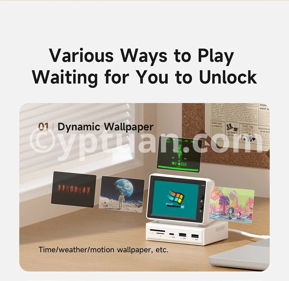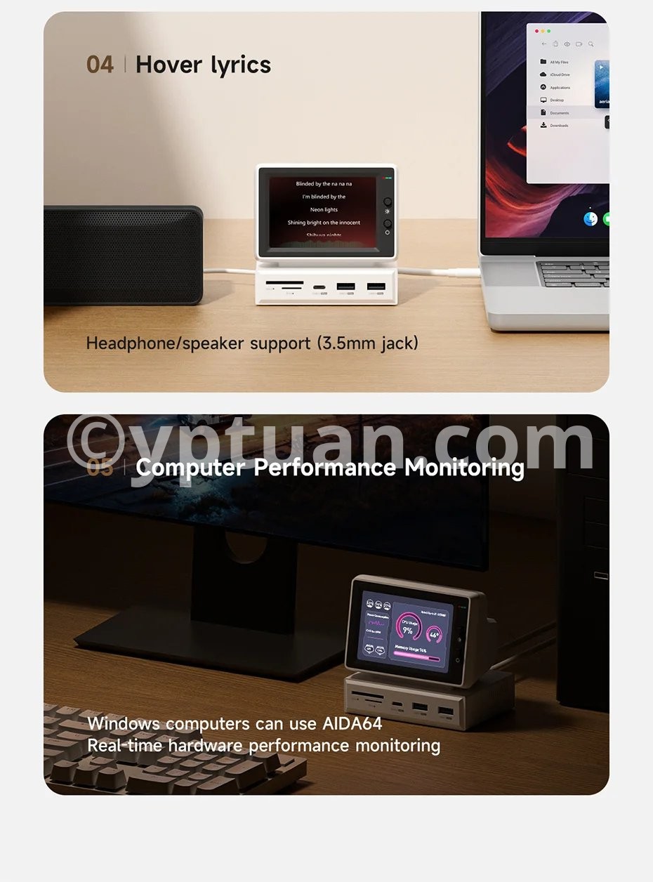 Multiple Display: Hagibis IPS Mini Screen Docking Station can display various images, such as time, weather, temperature, dynamic wallpapers, electronic photo albums, video playback, floating lyrics, computer performance monitoring, etc. More fun gameplay awaits you to unlock with us