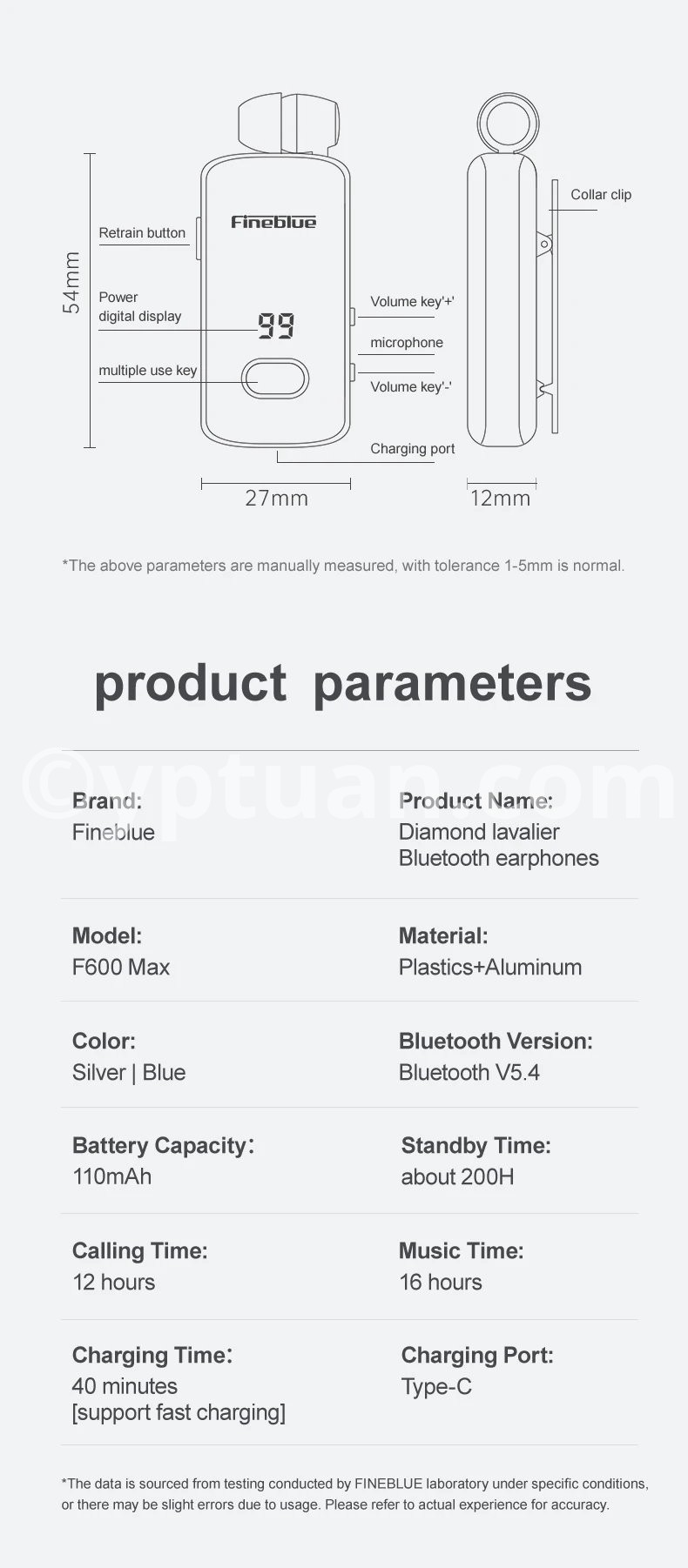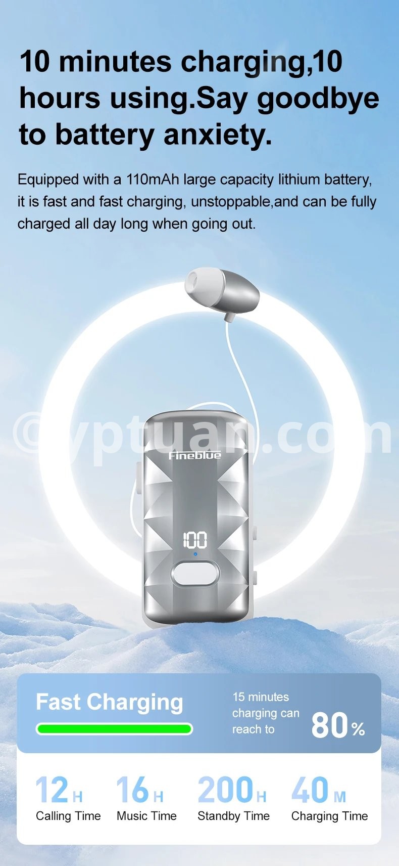 Fineblue F600 Max Wireless earphone Bluetooth 5.4 Retractable Headset Call Remind Vibration In-ear Sport Headphone for Hebrew