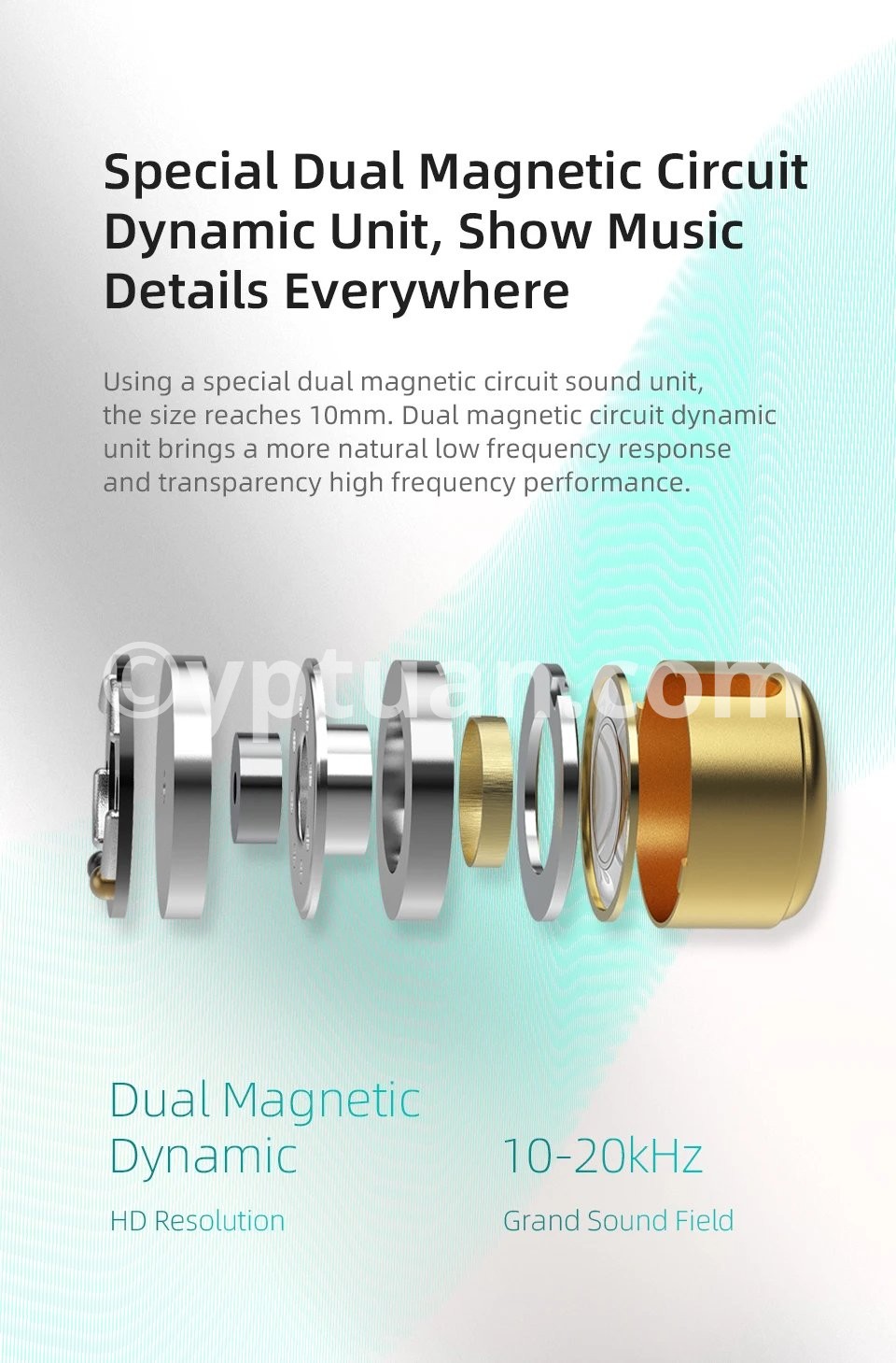 15.Driver unit: 1 Dynamic,10mm Dual magnetic circuit dynamic drive