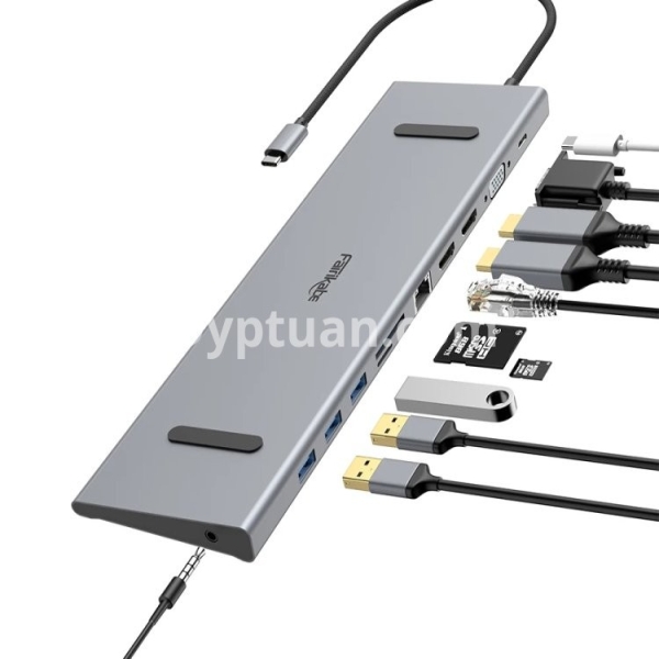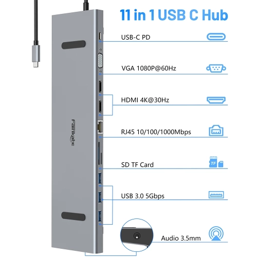 Fairikabe 11IN1 Multi-port USB C Hub Laptop Docking Station With Gigabit Ethernet 2HDMI 100W PD VAG USB3.0 SD/FT Audio For Dell