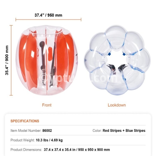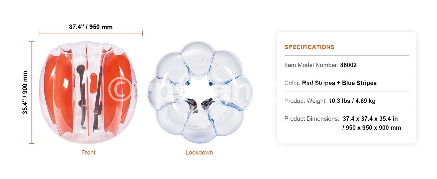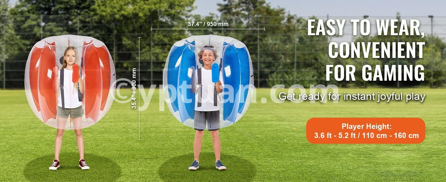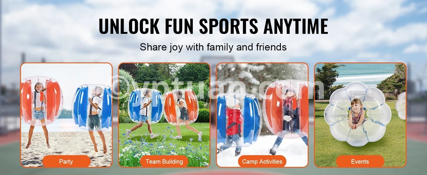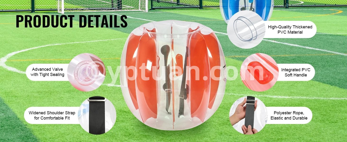 Safety Meets Fun: Player safety is of utmost importance in our bumping adventures. Our inflatable bumper balls feature integrated PVC soft handles that are ergonomically designed. The widened adjustable shoulder straps effectively alleviate shoulder pressure and keep players securely inside.