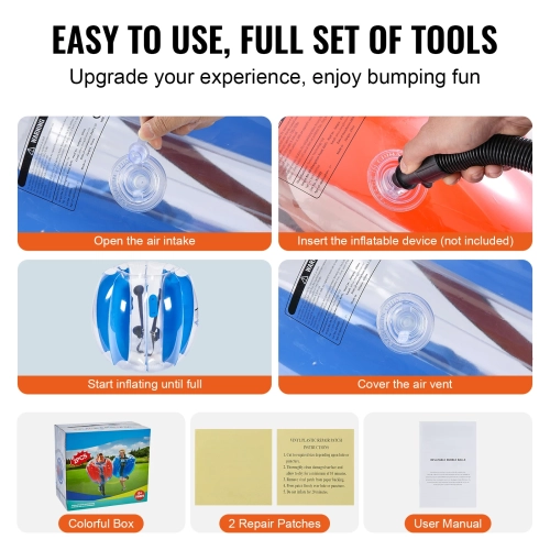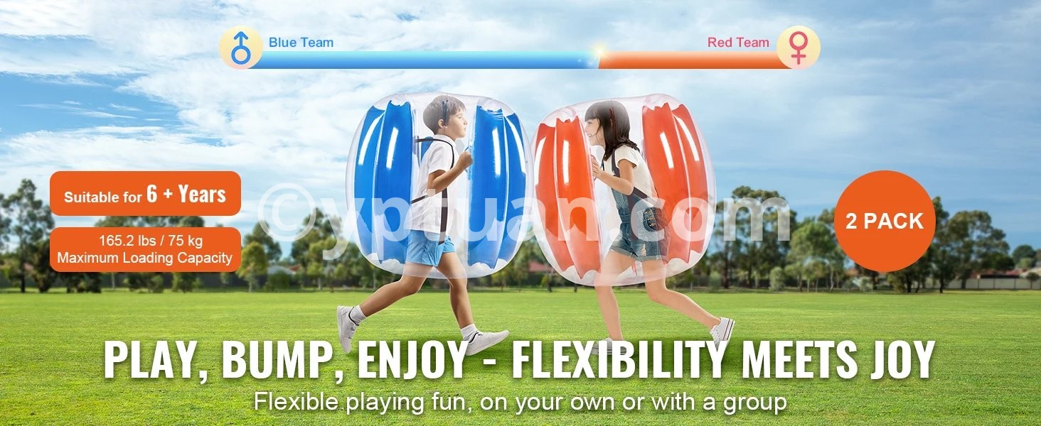Unleash boundless fun with SucceBuy's 2PCS inflatable bumper balls. Made from 0.3mm thick, explosion-proof PVC, our 3FT outer diameter bumper balls are engineered for ultimate durability and security. Get set to bump into thrills and forge unforgettable memories with SucceBuy bubble soccer balls!