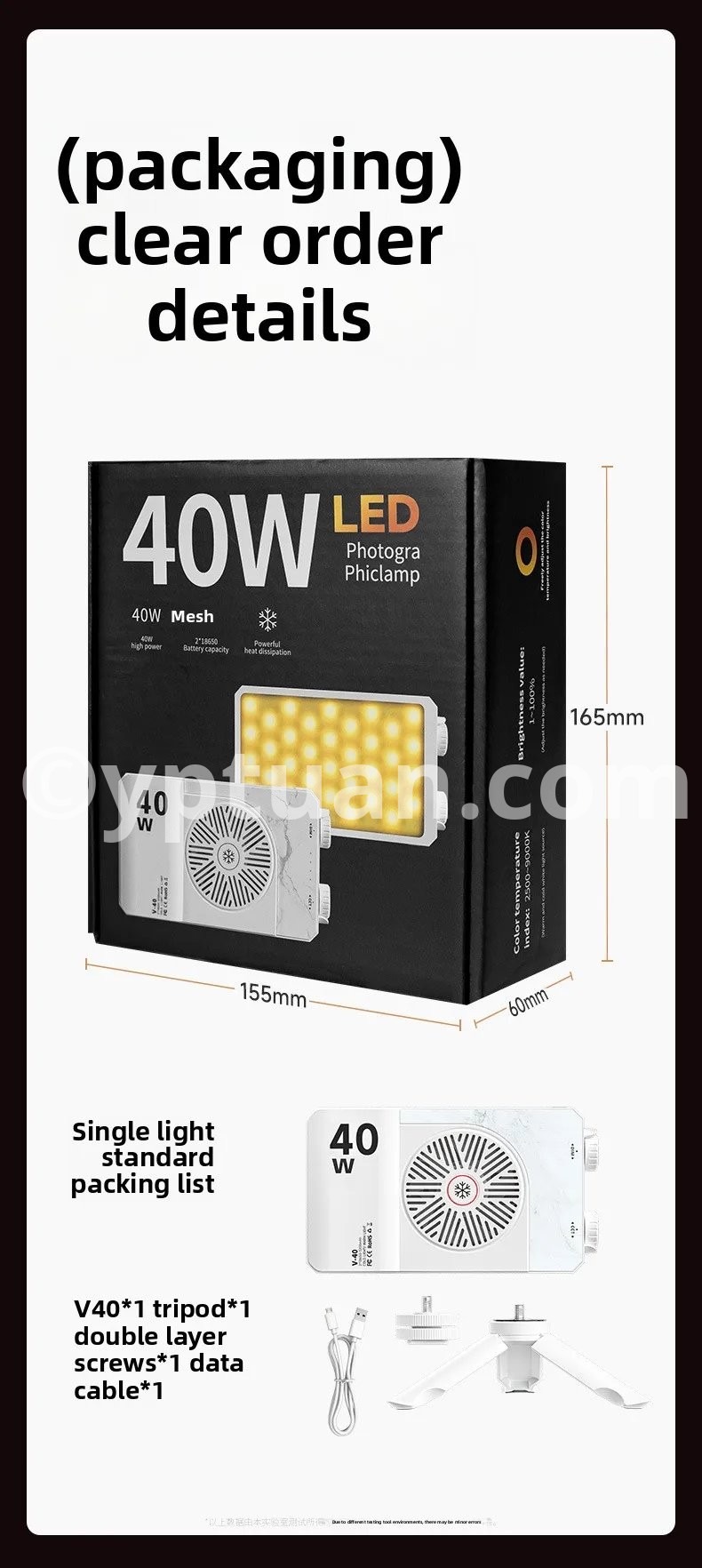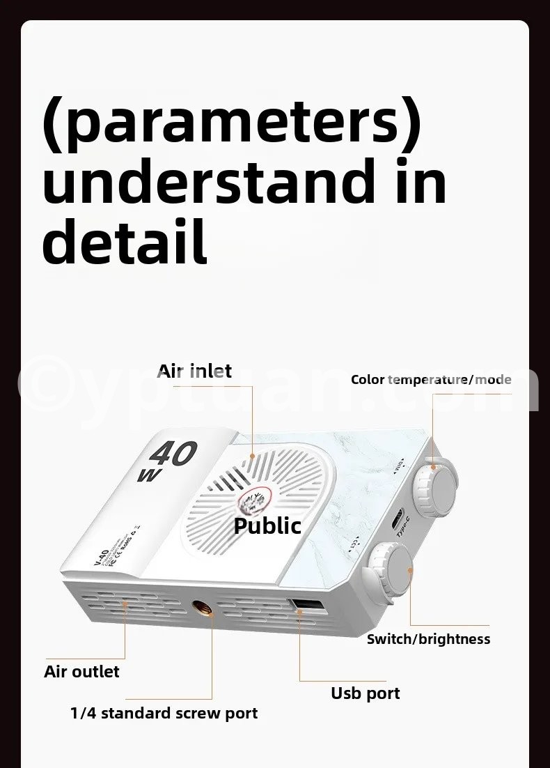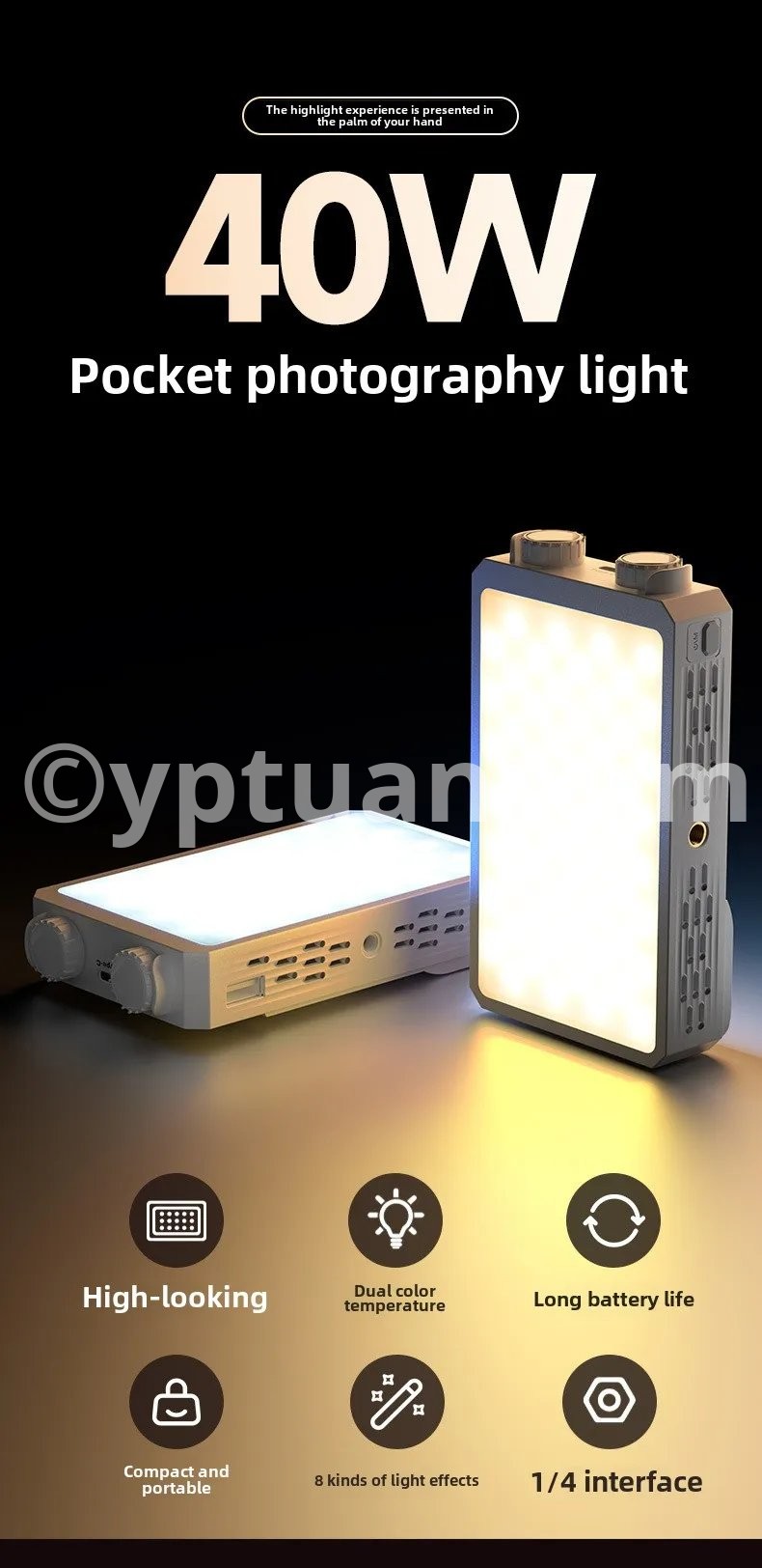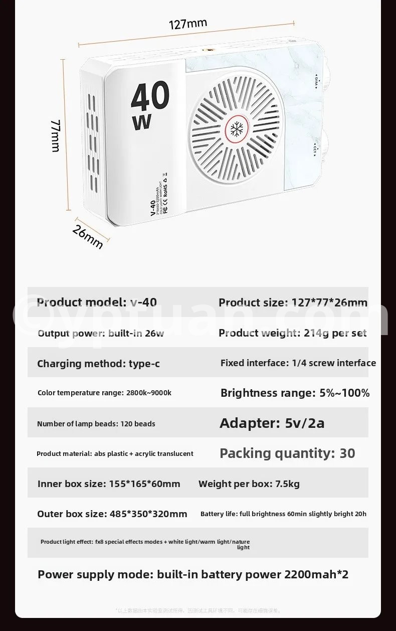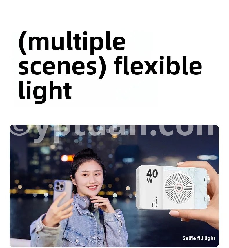 Portable LED video light 40W mini small portable fill light with built-in rechargeable battery, which can charge mobile phone PD