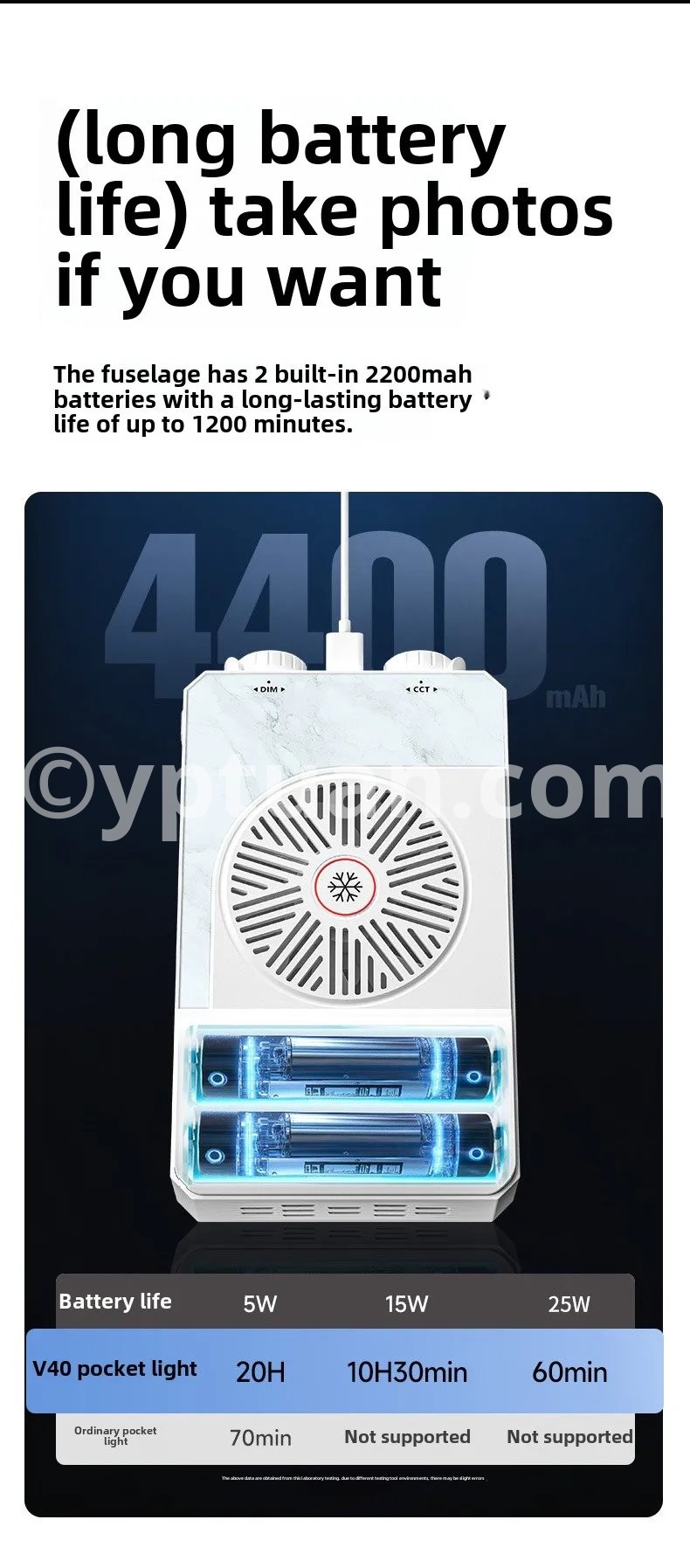 High-Power Illumination: Equipped with a 40W LED light source, delivering an impressive peak intensity of 8000 lumens.