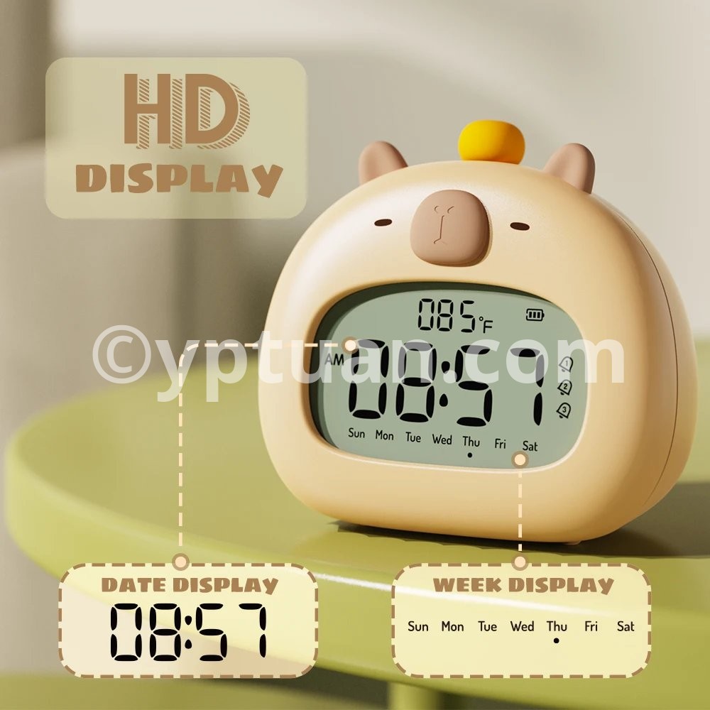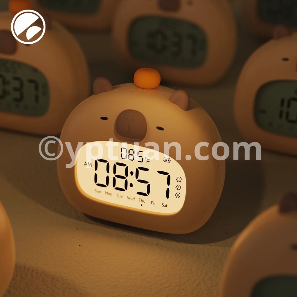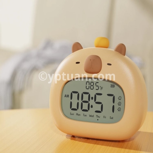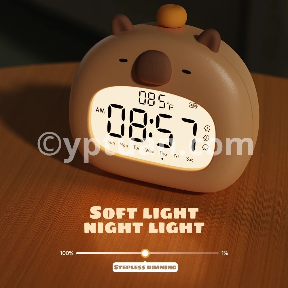 Bedside LED Clock Kids Alarm Clock Children's Sleep Trainier Temperature Display With Rechargeable Control Digital Cute Capybara