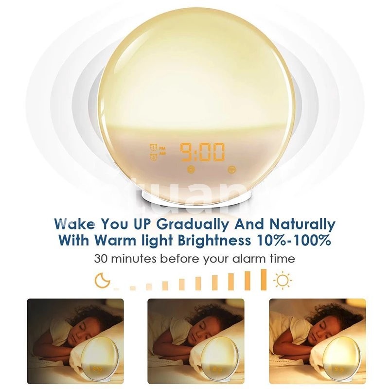 Wake Up Light Alarm Clock with Sunrise Simulation FM Radio Night Light Natural Sounds Sleep Aid for Kids Heavy Sleepers