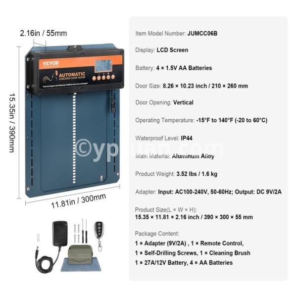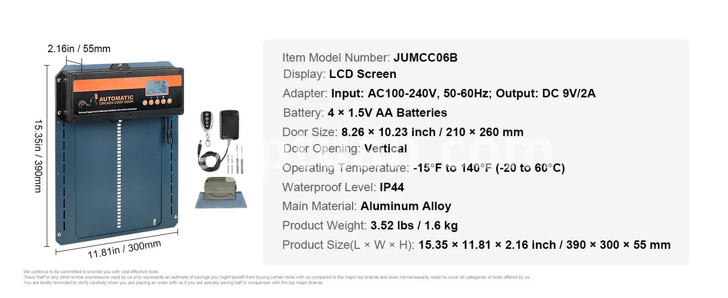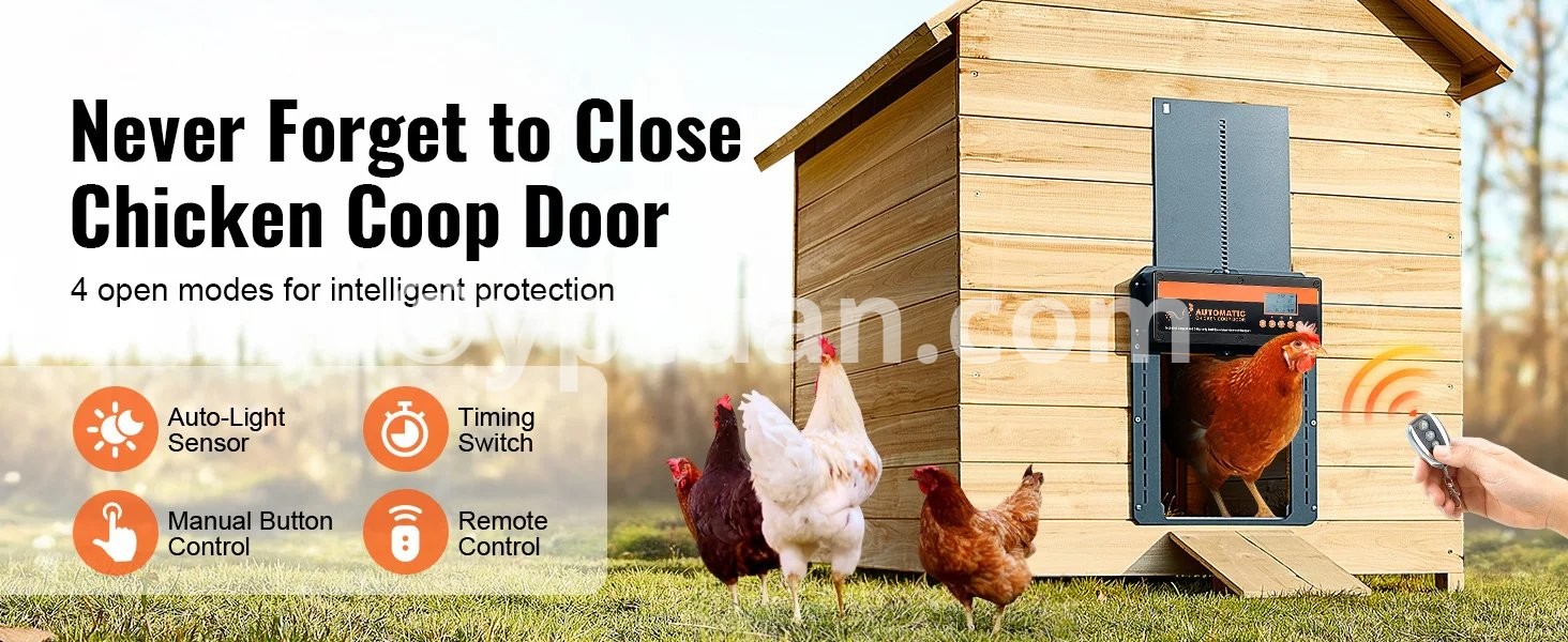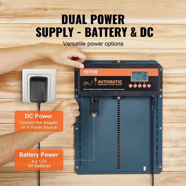 Dual Power Supply:Designed for convenience, the door operates on both battery and DC power, so you don't need to worry about running out of power. This ensures uninterrupted operation and reliable access for your flock.