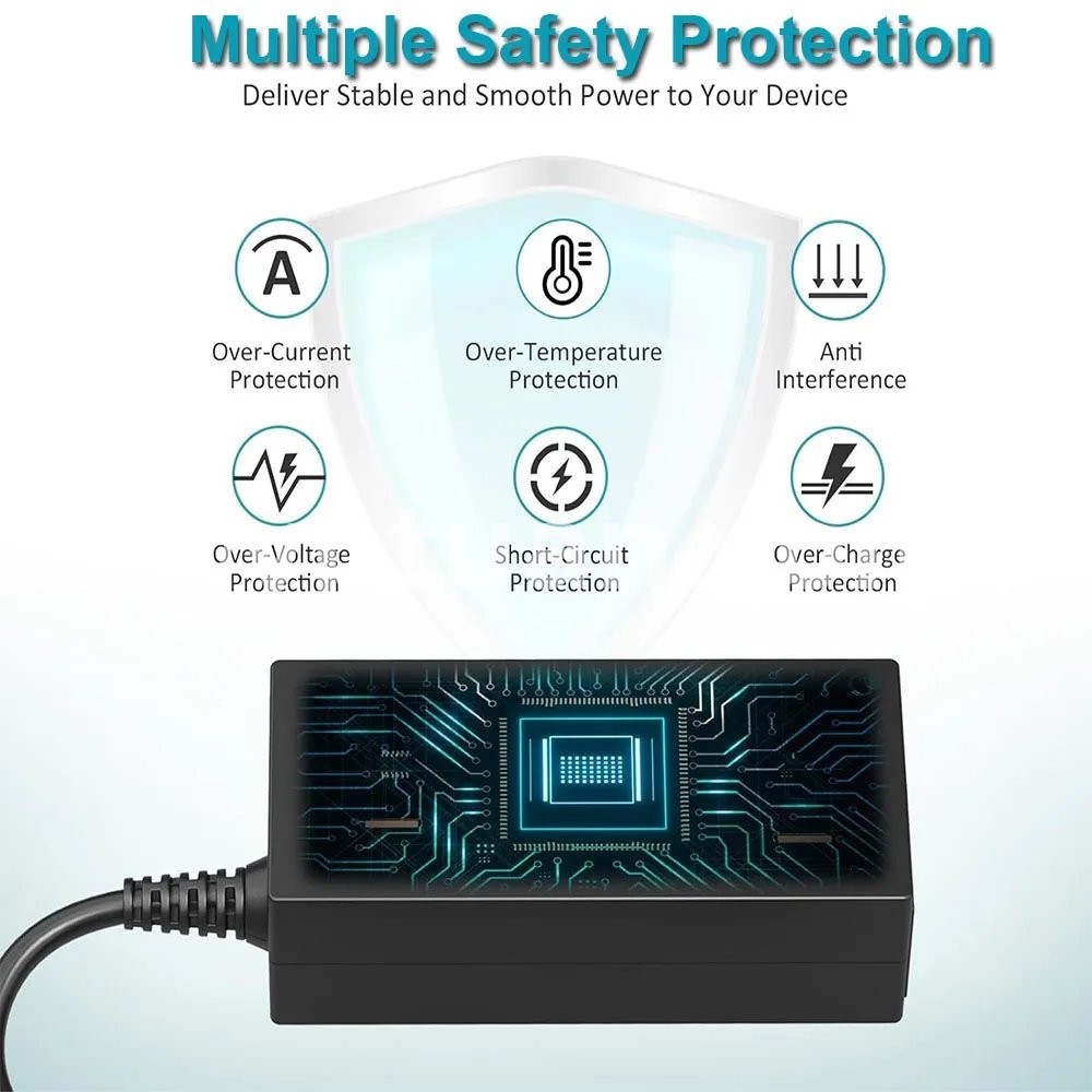 【SAFETY GUARANTEE】This adapter has multiple security protections, which can automatically protect against Over Current, Over Voltage, Over Temperature, and Short Circuit.
