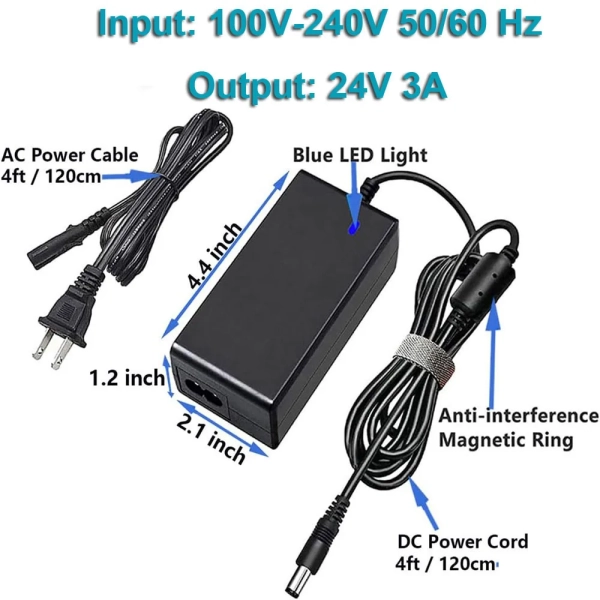 【NOTE】Package includes 1 X 24V Power Supply adapter, 1 X AC Cord. Please make sure the parameter is compatible with your devices, if you have any problems, welcome to contact us. We offer 1-year warranty.