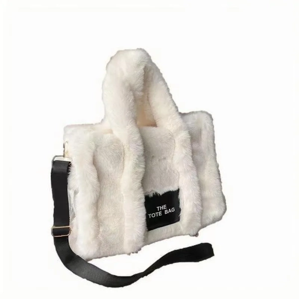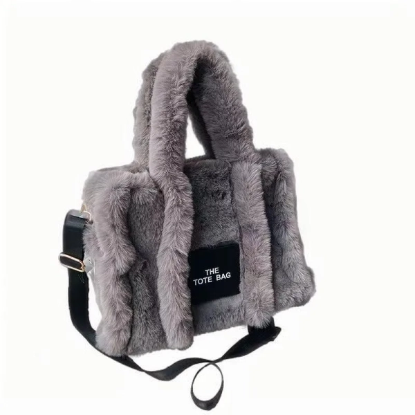 Women's large capacity plush black tote bag plush crossbody bag shoulder bag