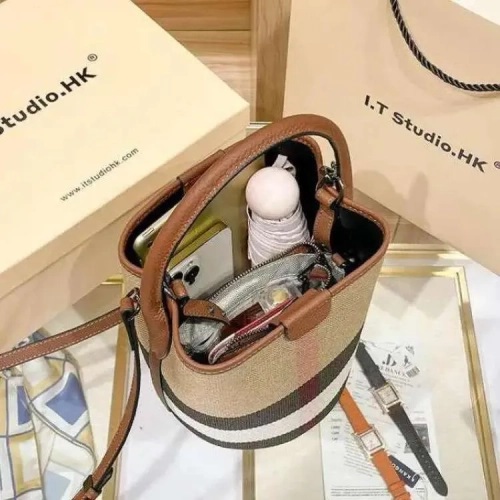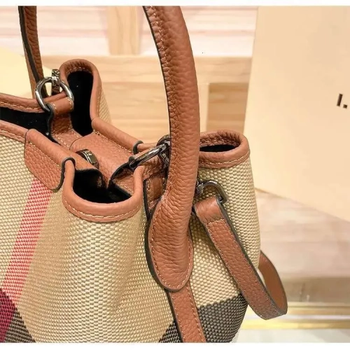 Canvas Genuine Leather Women Fashion Barrel Bucket One Shoulder Crossbody Bags Female Purses And Handbags Ladies Bag