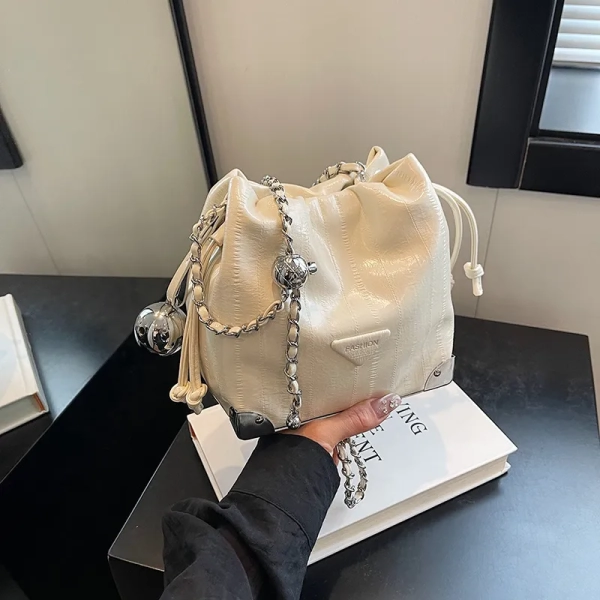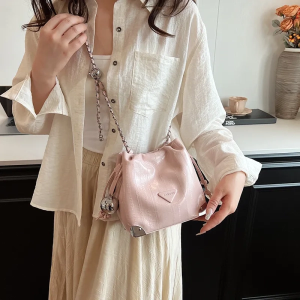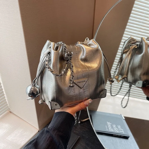 Women's Handbag Free Shipping Designer Bag Pleated Drawstring Bucket Bag New Versatile Silver Lucky Bag Crossbody Bag Niche Chain Shoulder Bag