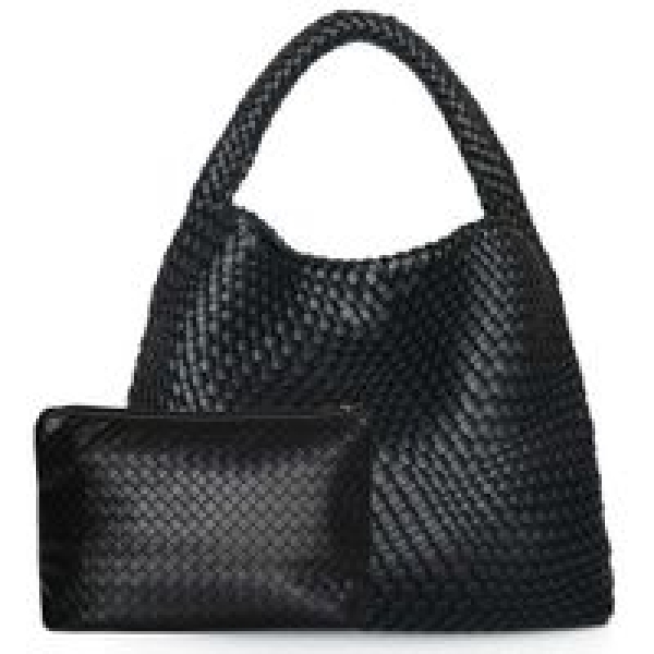 for Women Large Woven Handbag Soft Leather Shoulder Work Shopper Summer Beach Travel Tote Bag with Purse