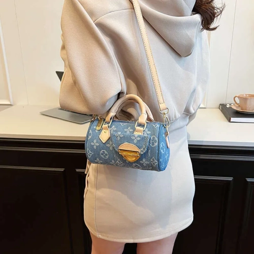 Popular Niche Denim for Women New Trendy Fashionable Versatile Crossbody Handheld Cylinder Bag 2025