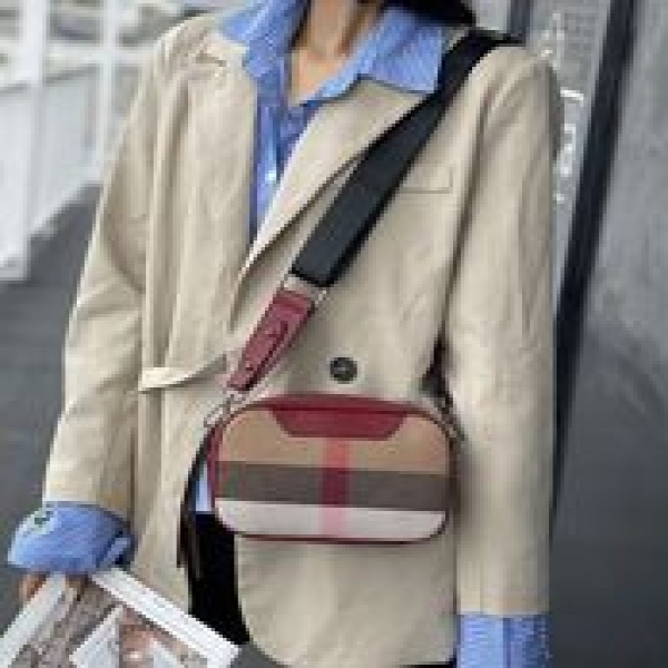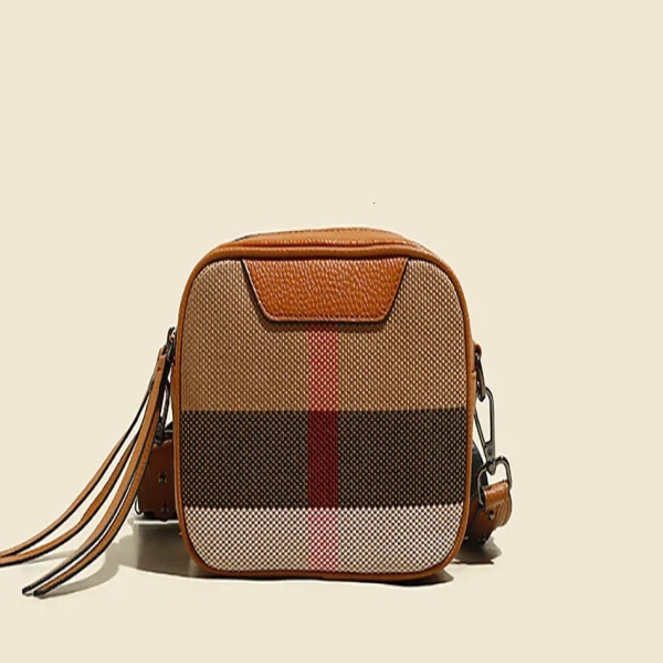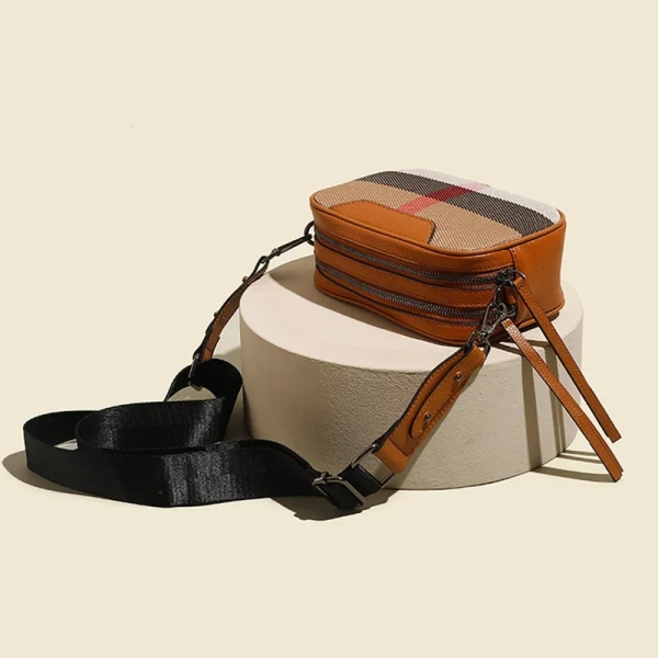 Free Shipping Real Leather Women's Small Canvas Crossbody New Wide Strap Fashionable Square Flip Designer Shoulder Plaid Bag