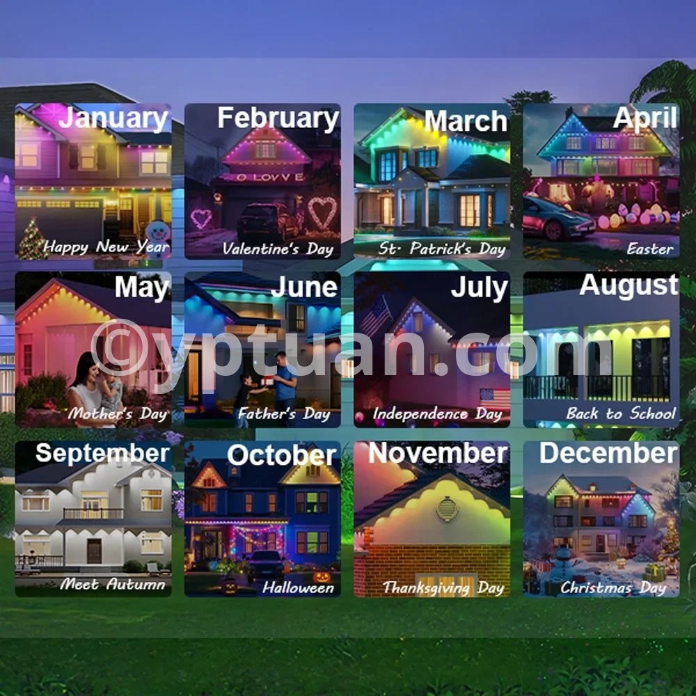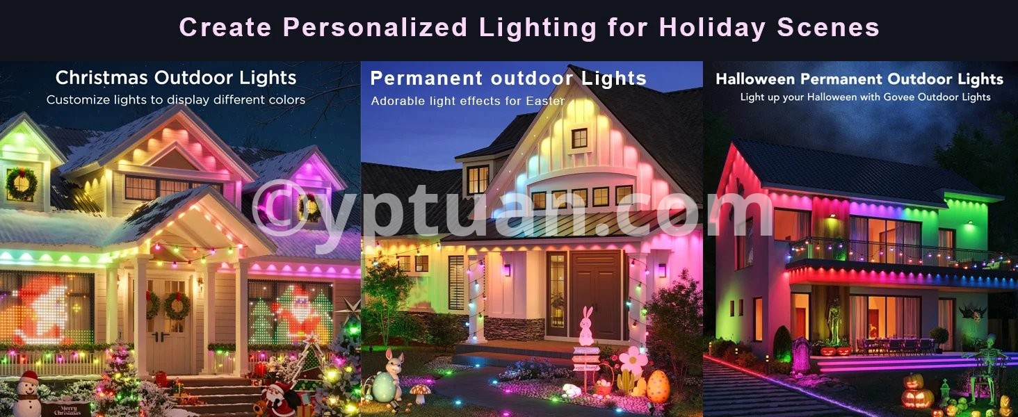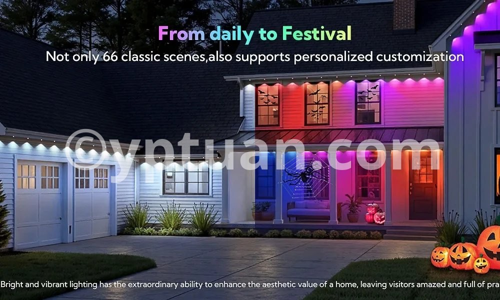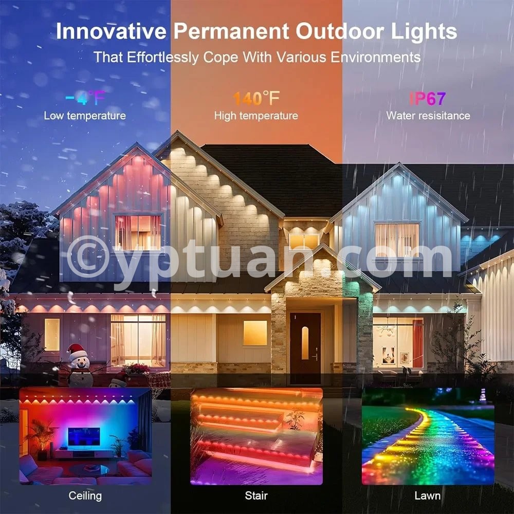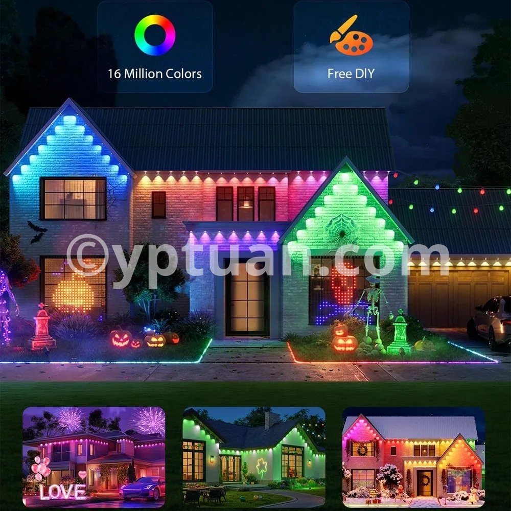 Eaves Lights Smart RGB Permanent Outdoor Lights DIY Colors Waterproof Eaves Lighting for Christmas Halloween Holiday Daily Decor