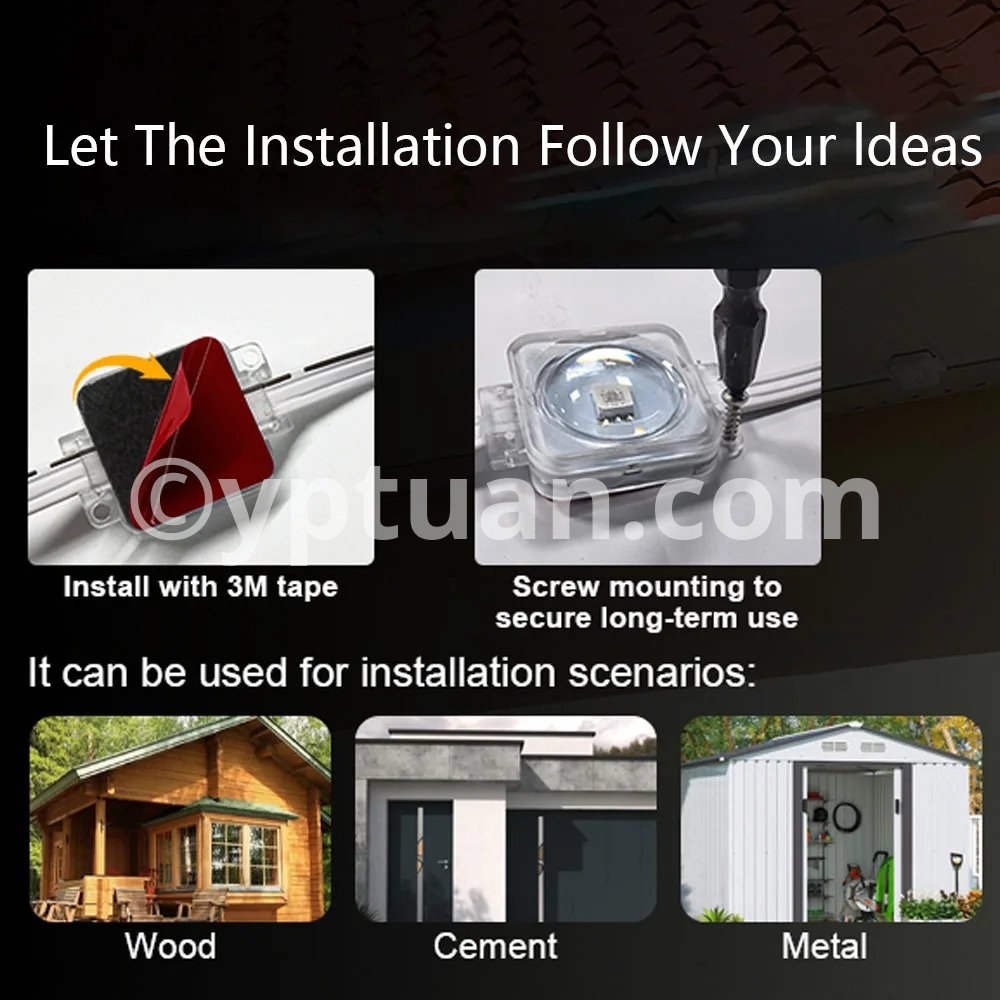 Elegant round shape design, exquisite appearance. Adopt PC material as light guide, wide beam angle. The lamp body is suitable for any place installation, and the installation is simple and quick. 16 million colors, optional brightness and lighting modes available. Support timer, countdown, sharing and memory funcitons. Adopt high bright LEDs as light source, excellent consistent light color. Waterproof design and filled with glue for better IP grade.
