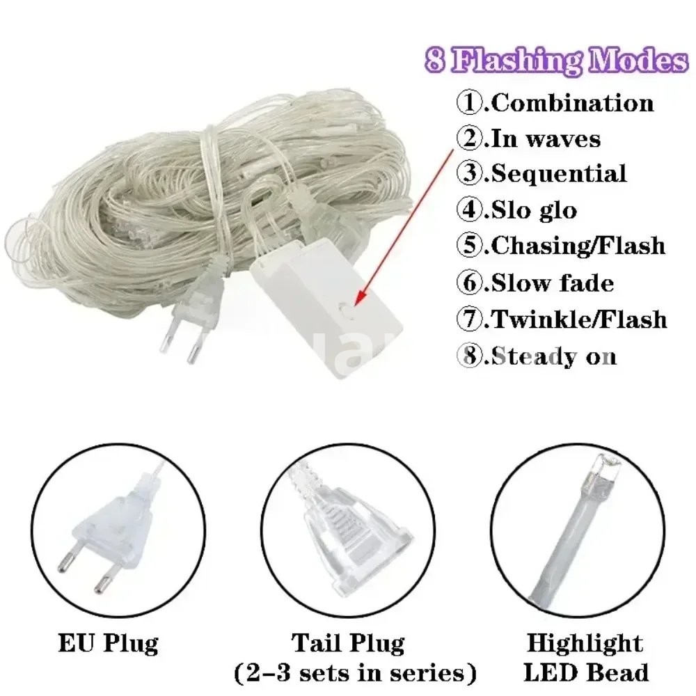 LED Curtain Net Mesh Fairy Lights String EU Plug 220V Wedding Christmas Garland for Bedroom Garden Wall Outdoor Room Decoration
