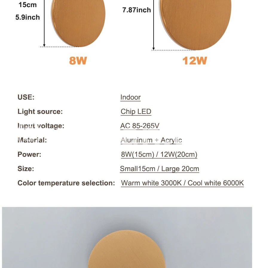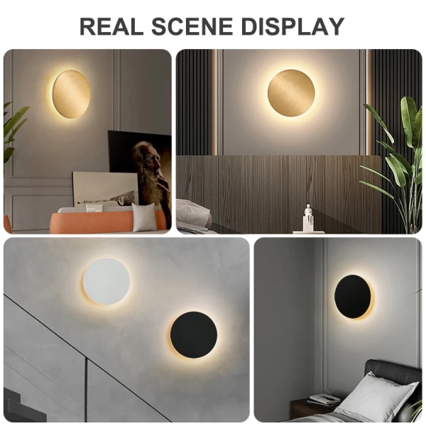Modern Round Wall Lamp 15cm/20cm LED Black/White/Gold Aluminum Acrylic Light Fixture Easy Install for Living Room Bedroom