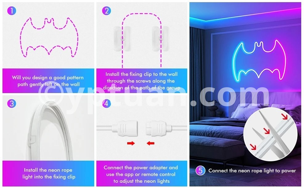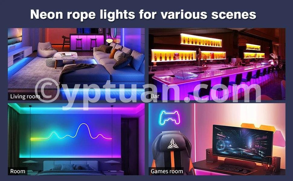 compared to conventional LED light strips, this neon light strip is more flexible and can be bent by 360°. You can easily bend it into the shape you want. It can easily decorate bedrooms, rooms and kitchens. IP65 waterproof, suitable for indoor and outdoor use