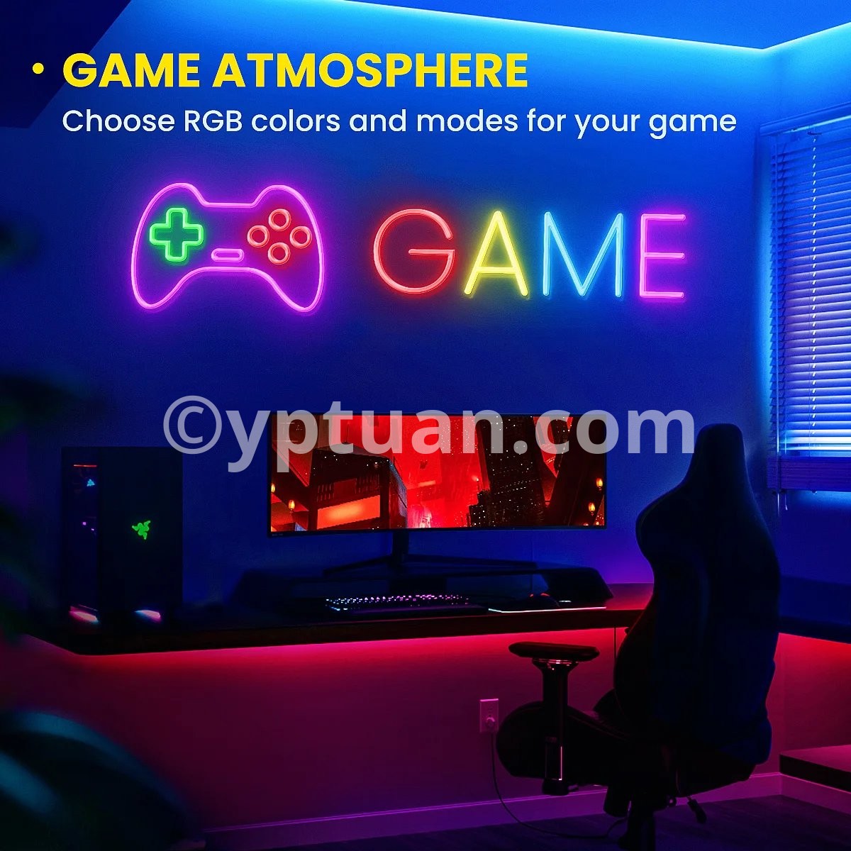Elevate your gaming room decor with our Neon Gaming Lights! Our flexible neon LED strip lights come equipped with music sync, let the light and frequency change according to the surrounding sound. Perfect for gamers and streamers alike, these flexible neon lights offer complete customization to suit your style.