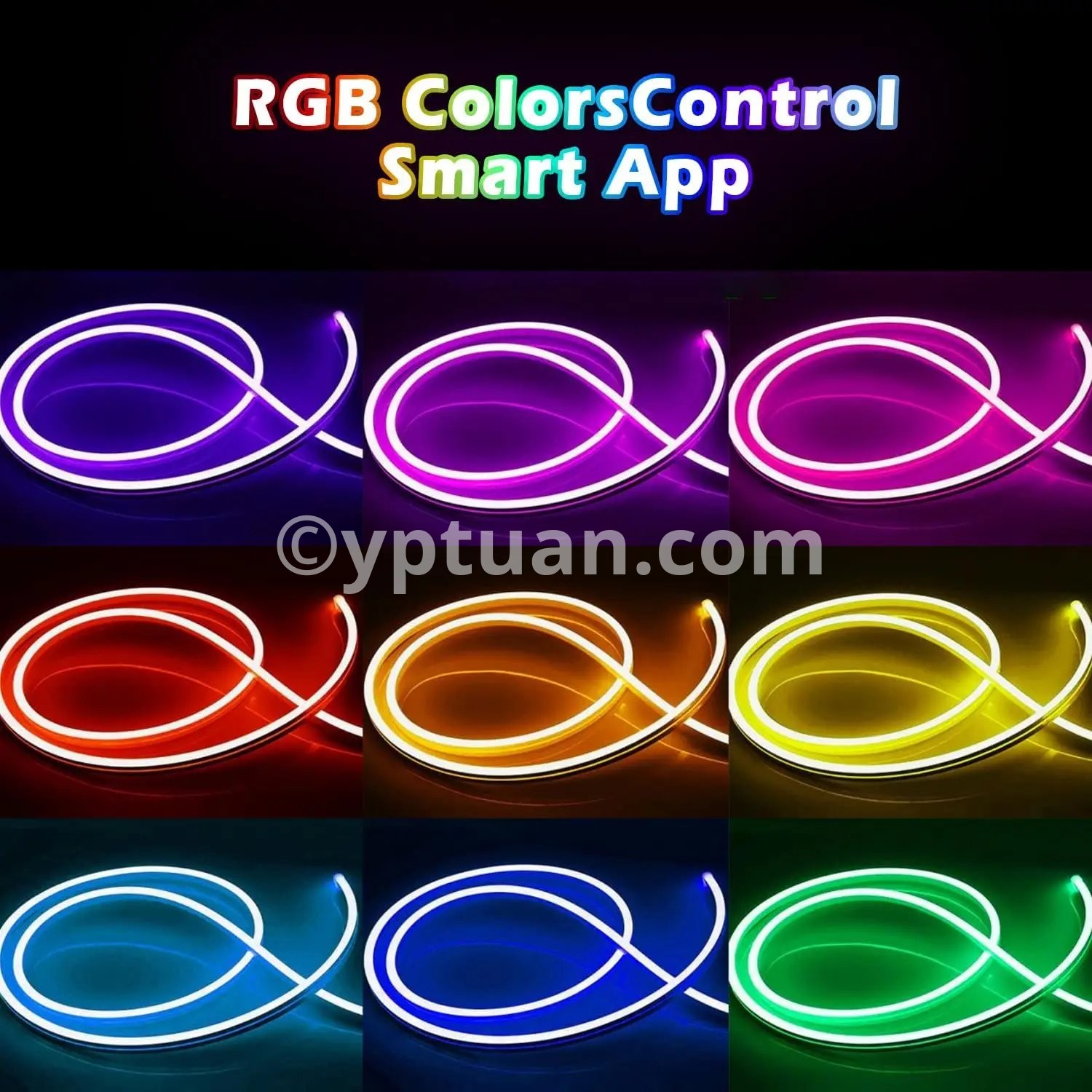 neon LED strip uses 24 V low voltage power supply and reduces the risk. The shell is soft and tough and can be folded as desired without breaking; the shell is resistant to high temperatures and non-flammable. There are many control methods that can be controlled by infrared remote control, controller button and app.