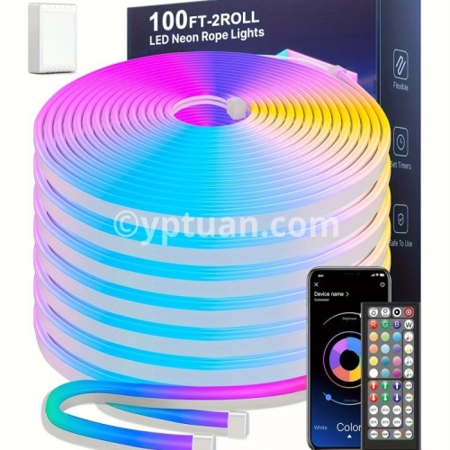 LED neon light strip consists of 1080 LEDs. The improved LED strip is brighter than the ordinary LED strip. The 120 degree projection range provides a wide range of light coverage. The light is very even. You can choose your favourite colour or mode via the app or remote control and then set a reasonable time to turn off the lights. When used again, the LED stip automatically remembers the last colour or mode.