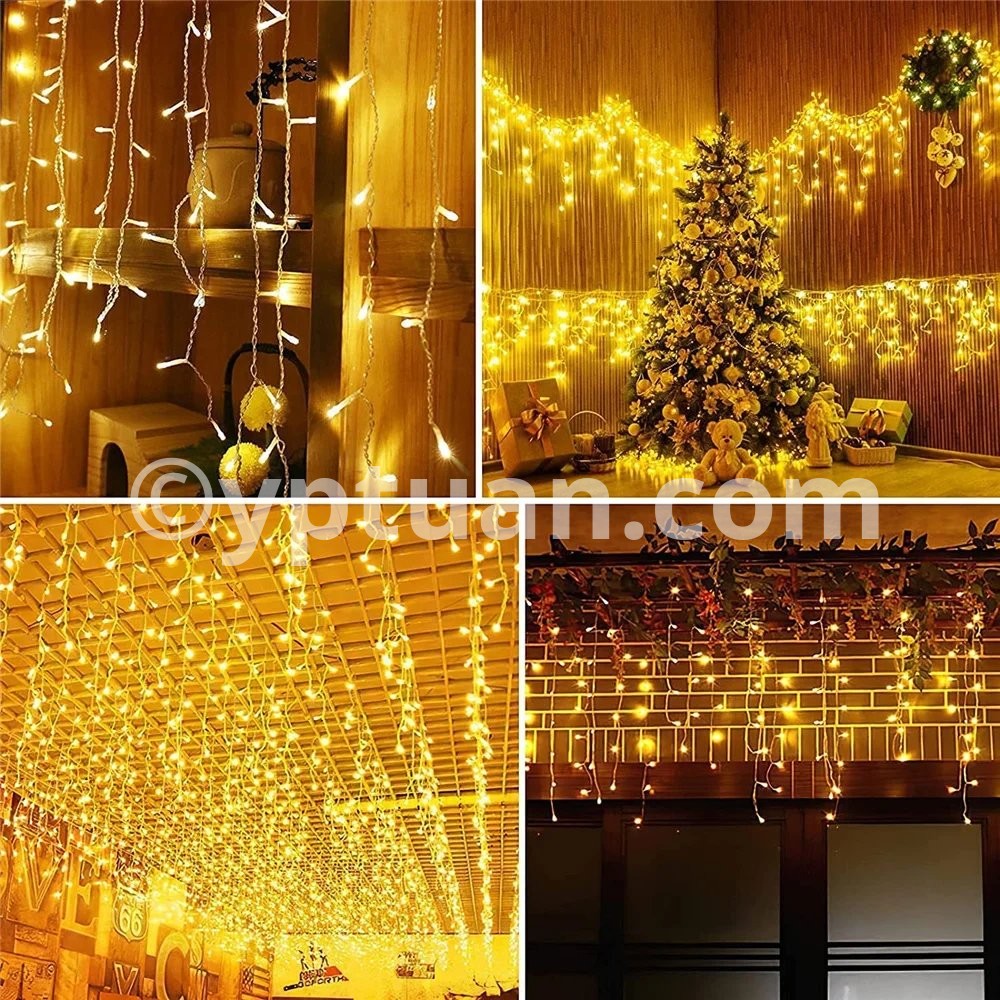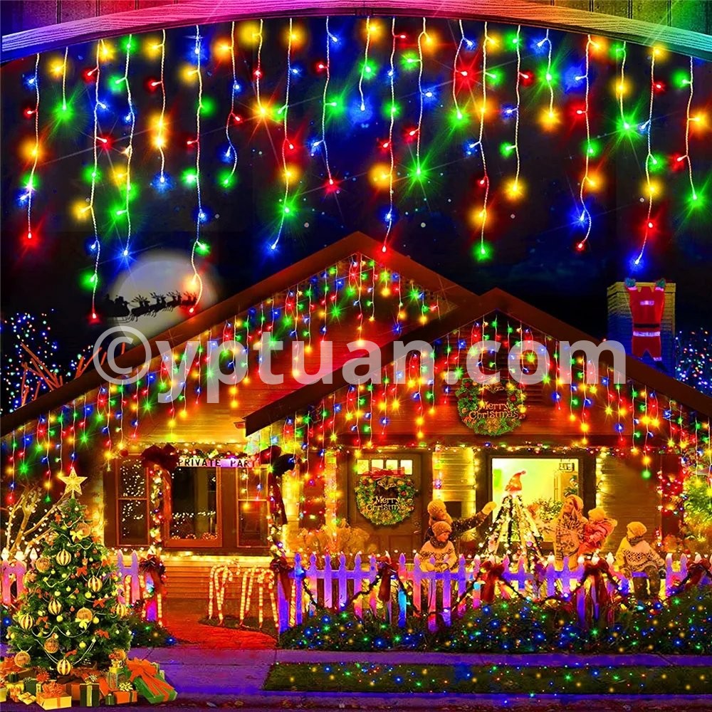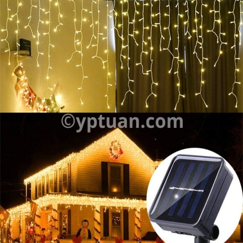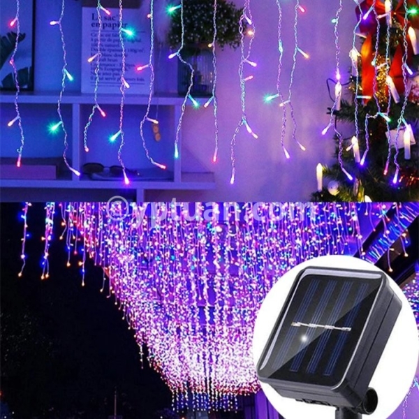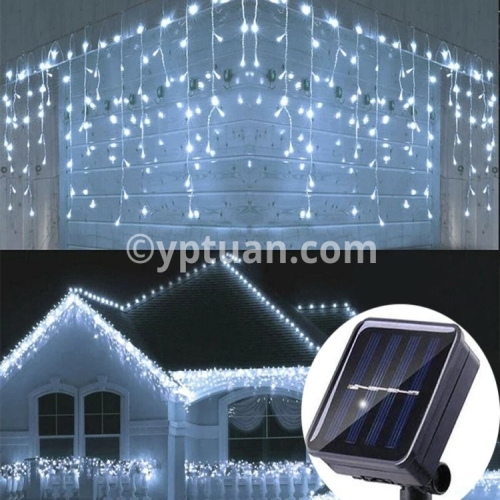 Solar Curtain Icicle Light 3.5M Eaves Decor Outdoor Fairy String Lights Wedding Party Christmas Stair Decor Garden Garlands