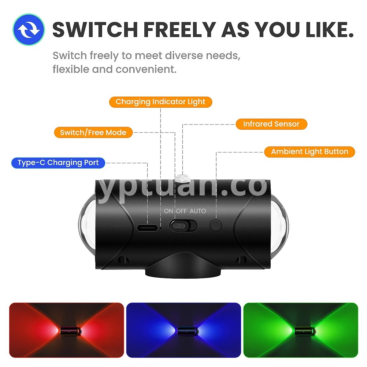 It has a button switch that can freely switch between three different modes to meet your diverse lighting needs. Equipped with a charging indicator light, making it convenient for you to know the charging status of the night light.