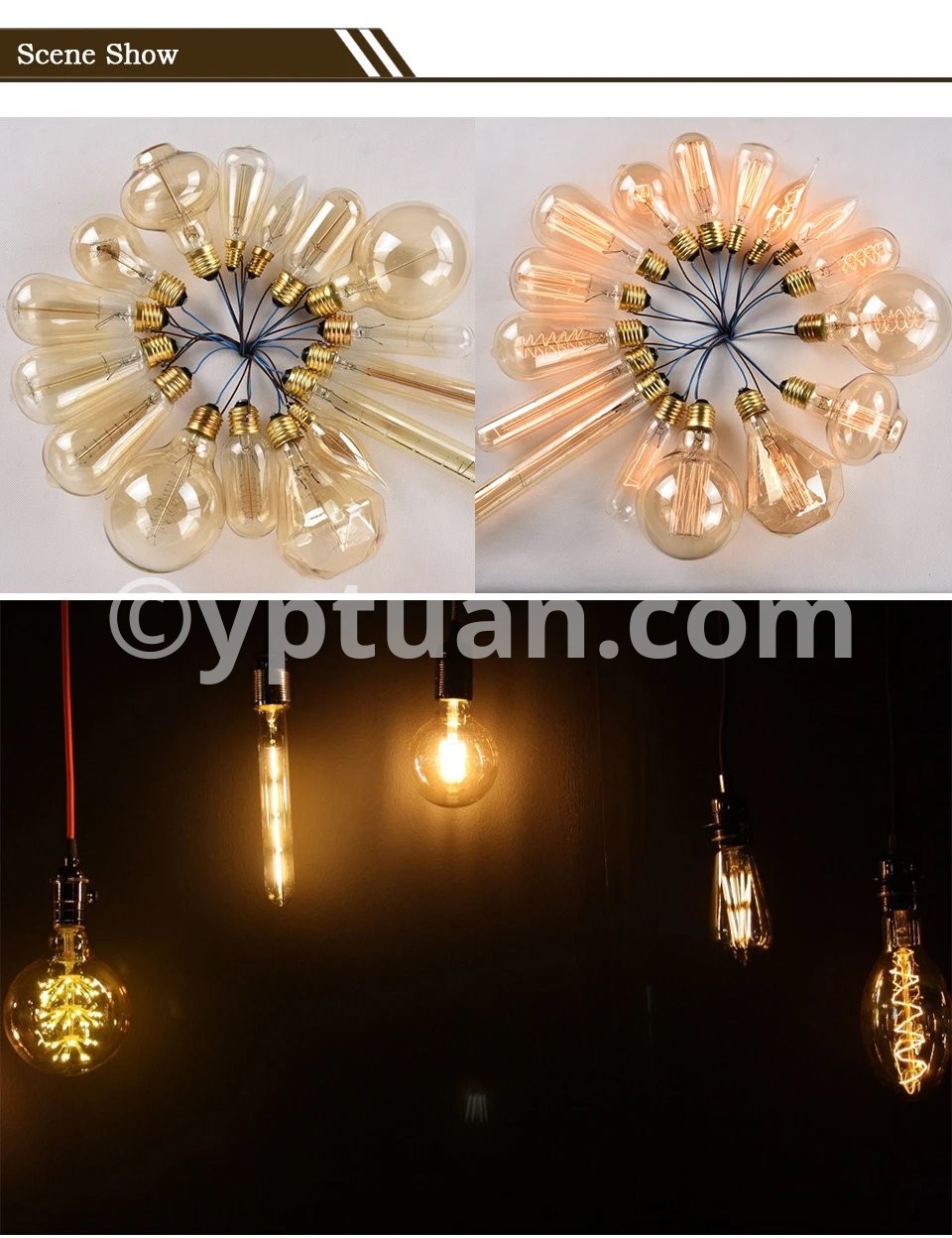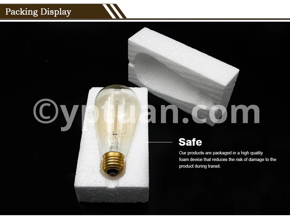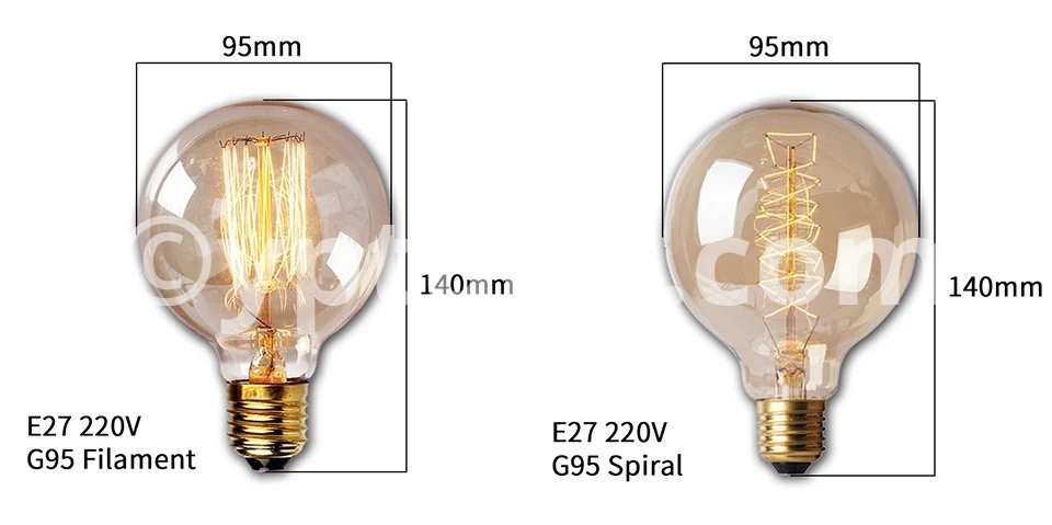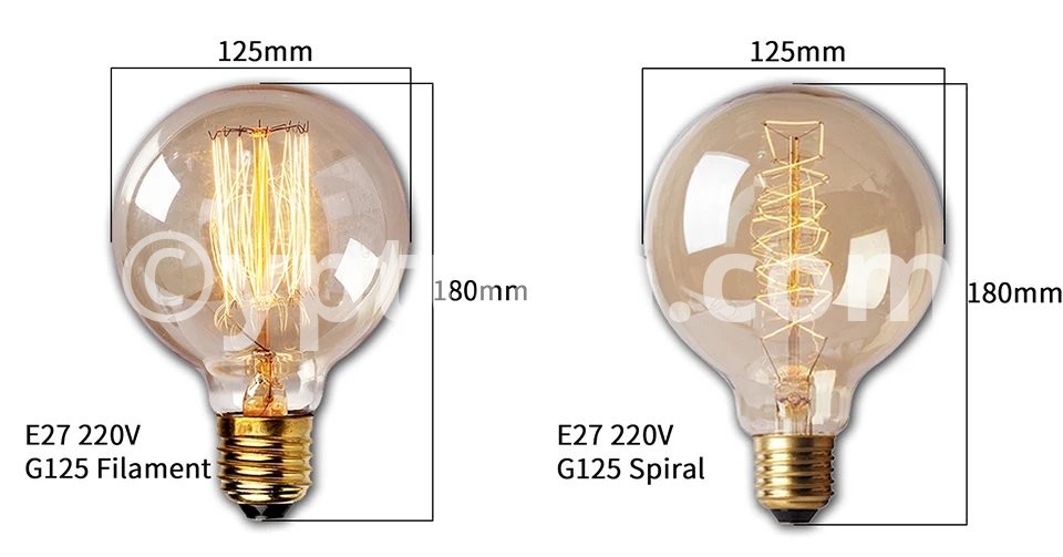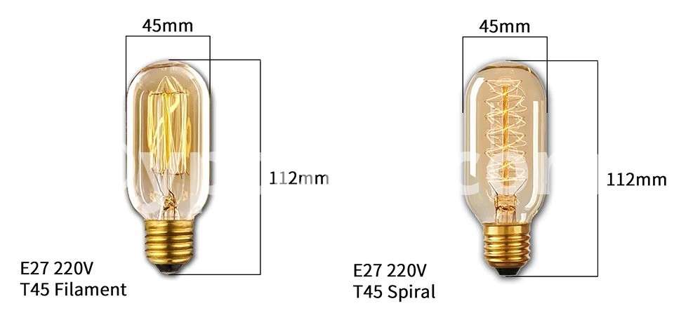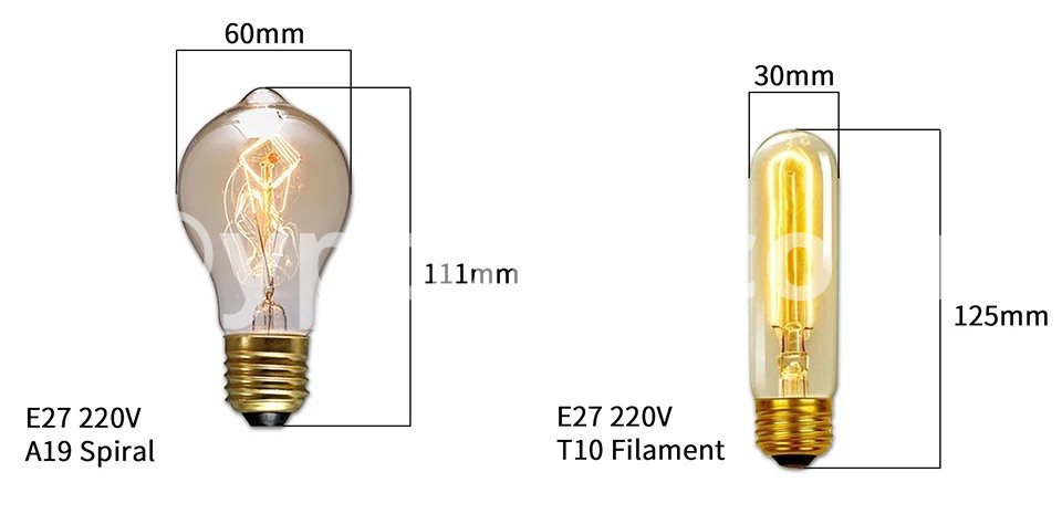 Description:Model: A19 ST64 G80 G95 G125 T45 T110 T185 Bulb Type: Incandescent bulb Base: E27 Voltage: AC220V-240V Power: 40Watts Materials: Transparent / Amber Glass