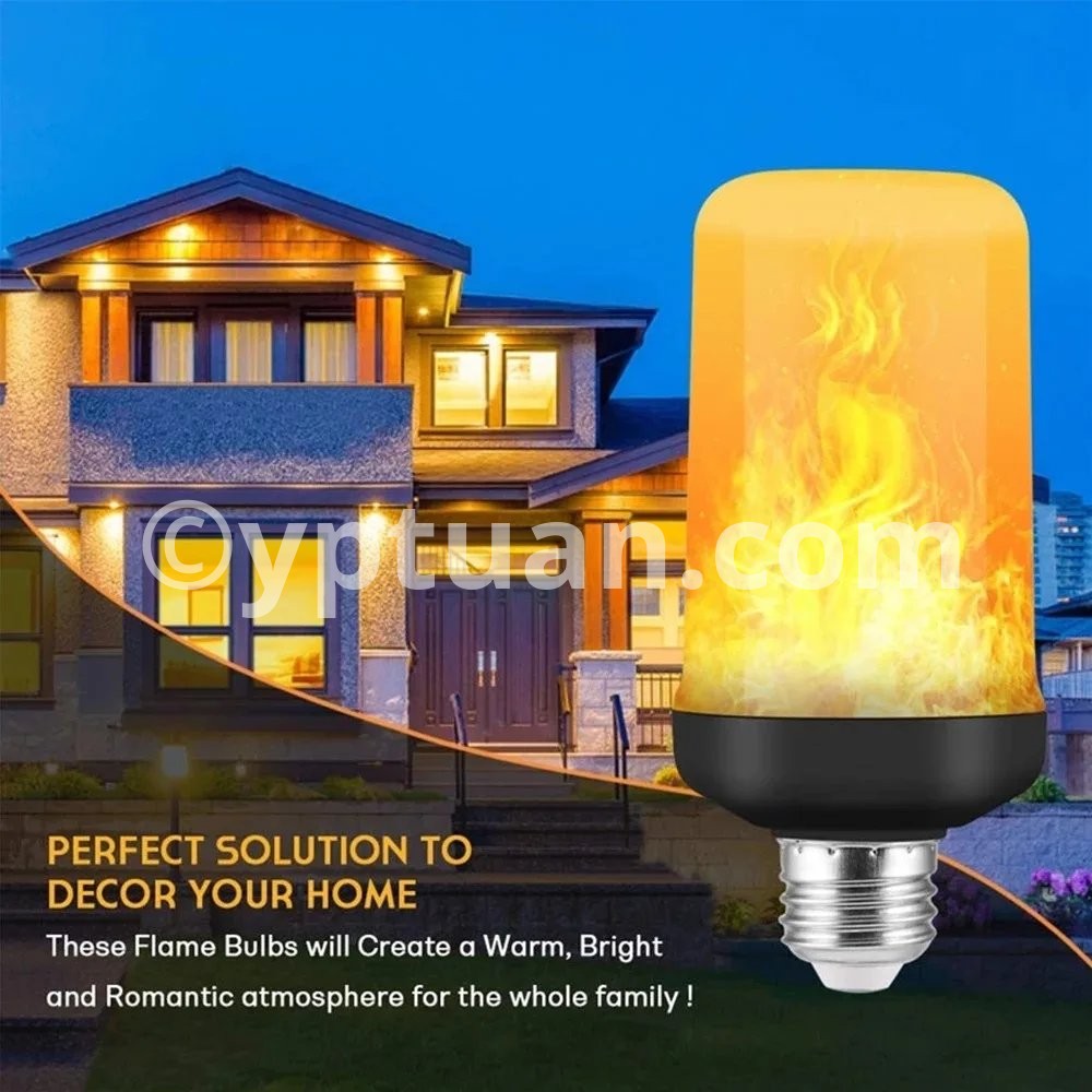 LED flame effect light bulb is a magic product warm LED lighting,fire led bulb that like gas flames, Create a warm, cozy and inviting atmosphere inside or outside no matter the time of year.
