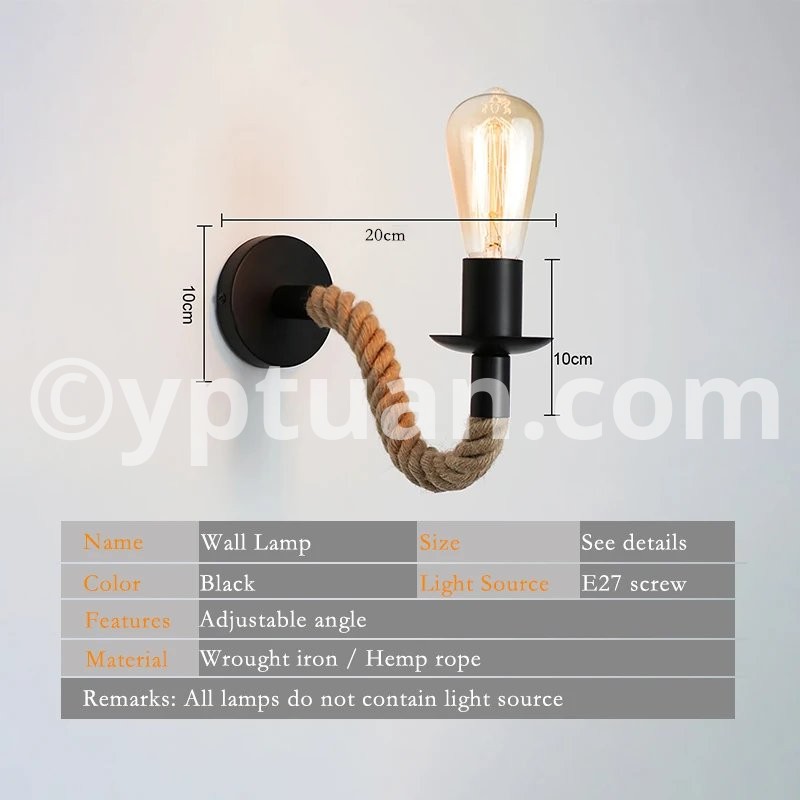 Retro Hemp Rope Wall Lamps E27 Iron Indoor Lamp Holder For Aisle Entrance Corridor Bedside Light AC90-265V Decoration Fixture
