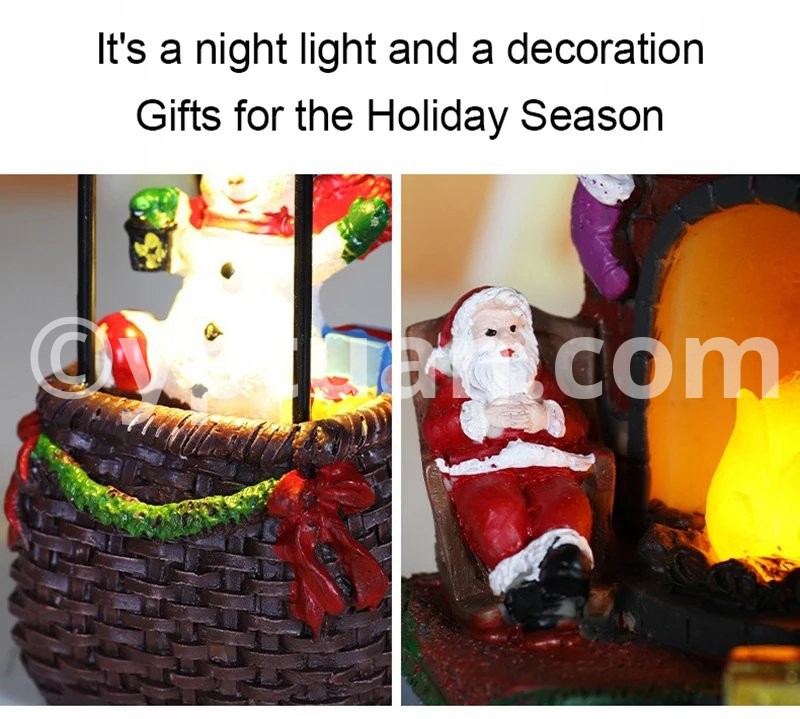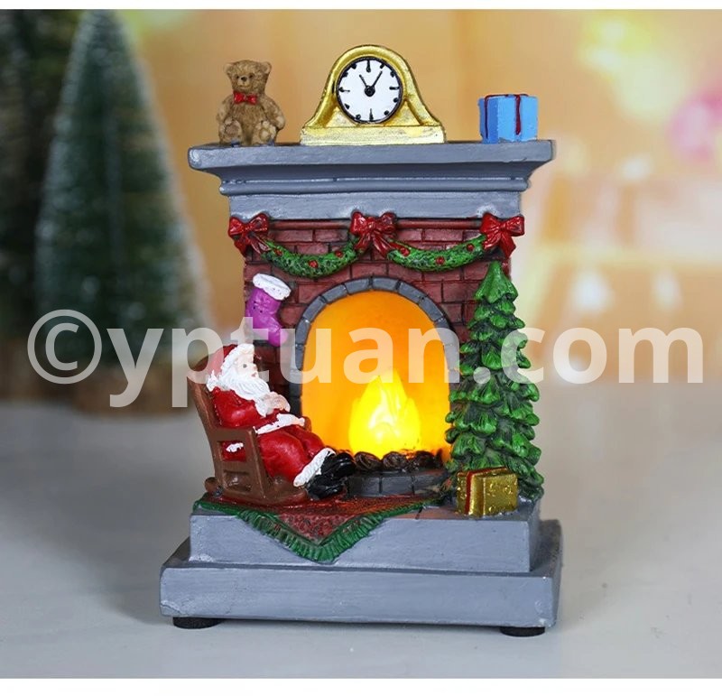 Christmas Glowing Ornaments Santa Claus Snowman Fireplace Resin LED Night Light Christmas Decoration Holiday Kids Toys Gift