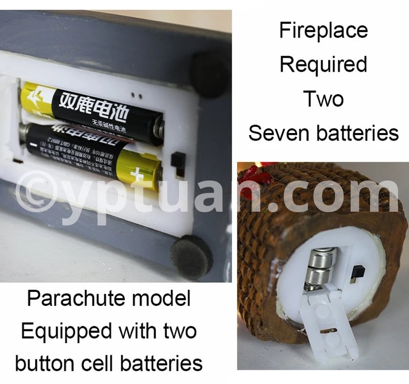 Name: Christmas Decorative Lights Size: A-13.5*9*6cm; BC-17*8.5*5cm Material: PVC + resin Style: Cartoon Power supply: fireplace (2*AAA batteries) not included; Parachute (2*Button Battery) included: Applicable scenarios: bedroom, living room, garden, etc Holidays: Christmas, New Year, children's gifts, Valentine's Day, wedding party decorations Package Contents: 1 x 1 Christmas Decorative Lights