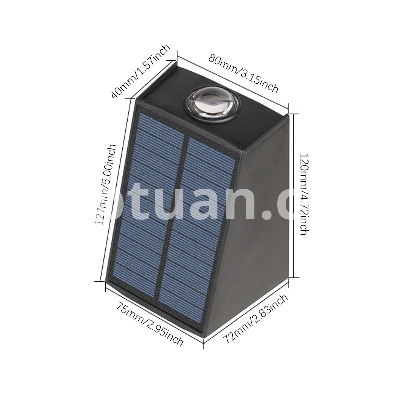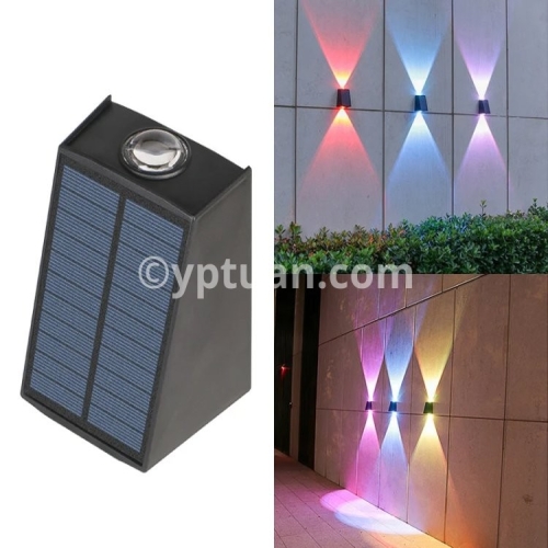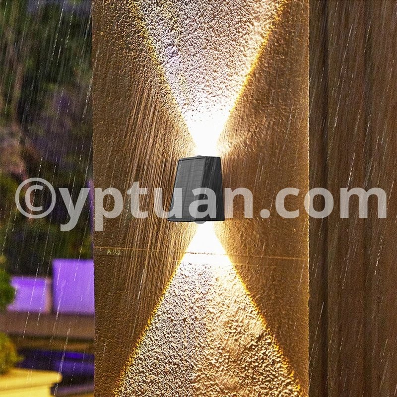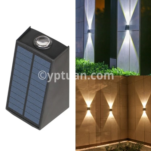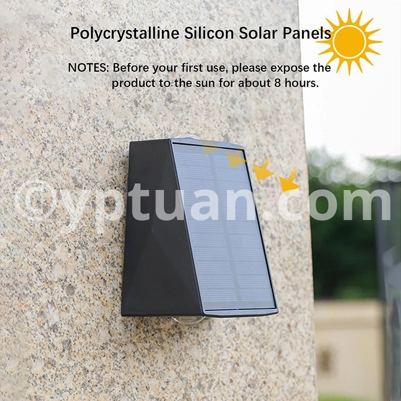 【Solar Wall Lights Up and Down】This modern solar outdoor wall lights are up and down glow design. There are 2 upgrade lighting LED on the top and bottom, forming a beam of up to 19.7Ft, which has a excellent lighting effects, providing better lighting and decoration for your house. 【Upgraded Solar Panel】The solar wall lights outdoor with built-in 1200mAh large battery capacity ,the higher conversion solar panel can be quickly full charging under direct sun light and fully charged can illuminate for 6-10 hours. 【Intelligent Optical Control】This led solar outdoor wall lights are intelligent light control, they can will auto charge during the day via direct sunlight and auto on at night. For optimal battery charging, please install the solar light in a location with direct sunlight. 【All-season Used】The outdoor solar lights is made of high-quality ABS material,anti-rust and all weather resistant can provide you constant lights in all bad weather,definitely a great lighting accessories for outdoor use. 【Easy to Install 】You can install them in minutes,they can be fixed with screws or double-sided tape, and each solar light can be individually illuminated, reducing Wiring and connection needs. The installation process is simple and can be adapted to decorate your house anywhere. 【Widely Application】The solar lights for outside has a unique shape and high brightness,it is a perfect choice as wall,patio,porch,garage,fence lights to provide warm atmosphere for various scenes such as garden yard,front door,walkway,deck,step decor.