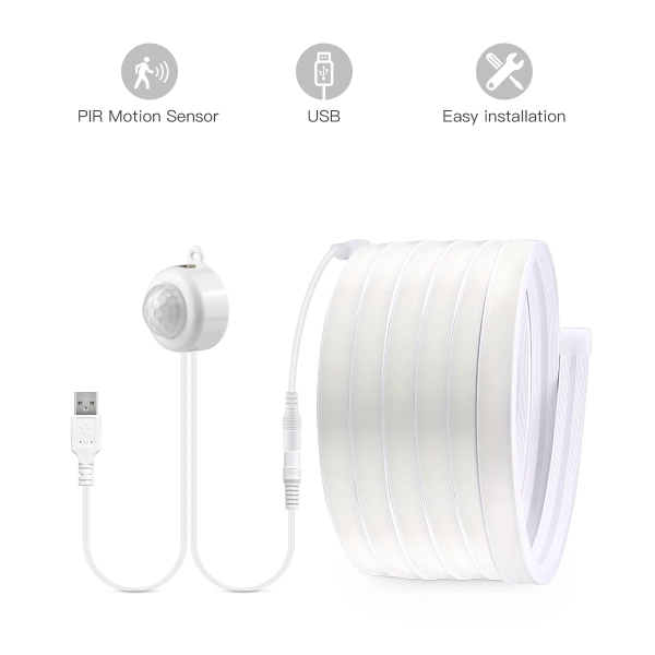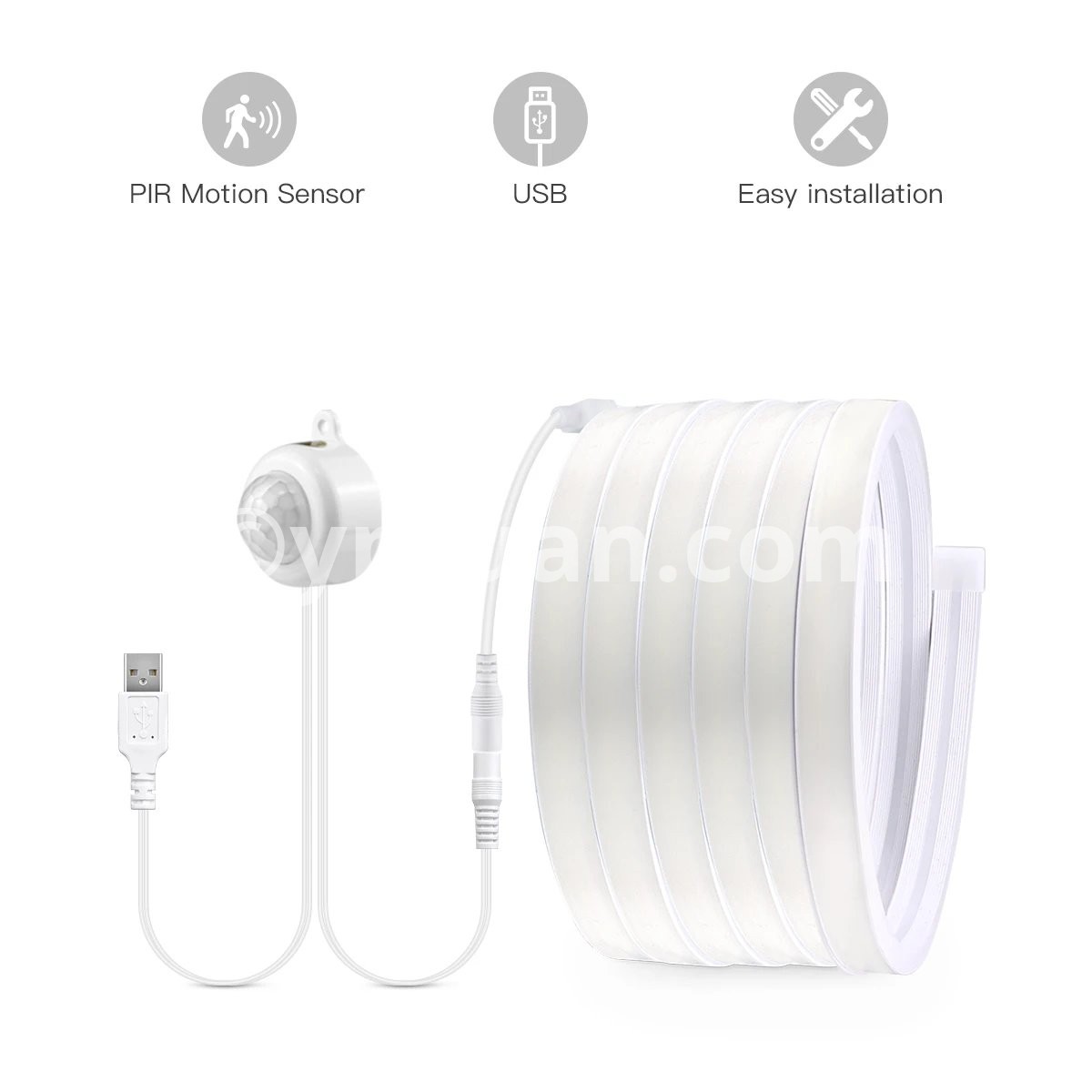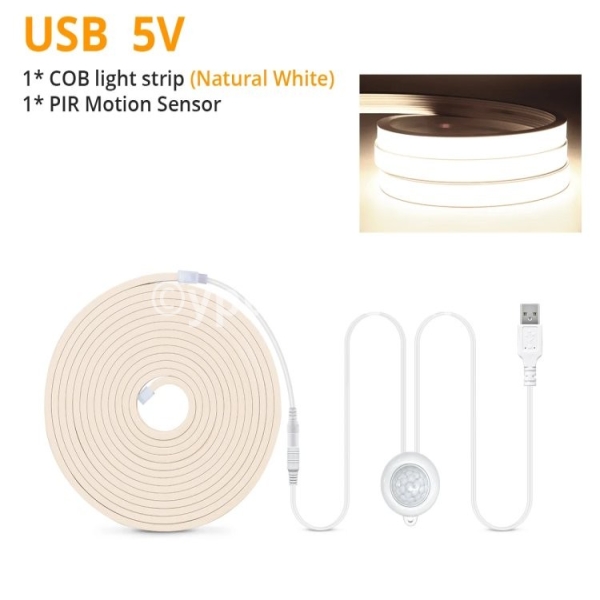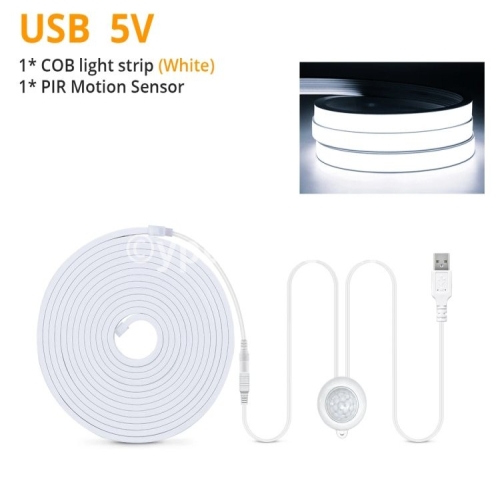 Smart PIR Motion Sensor Super Bright COB LED Strip Neon Light Auto ON/OFF 320leds/m Waterproof for Kitchen,Stair,Wardrobe Decor