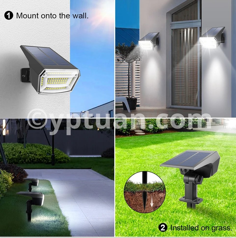 【2-in-1 Function and Easy to Install】: You can easily insert the courtyard light as a solar landscape light into the ground, or use the included screws to install it on the wall and aim it as a solar wall light at the trees. Very suitable for courtyards, porches, swimming pools, courtyards, gardens, lanes, paths, etc. Outdoor solar lights are perfect for decorating trees, gardens, flowers, walls, or houses on Christmas Day or parties.