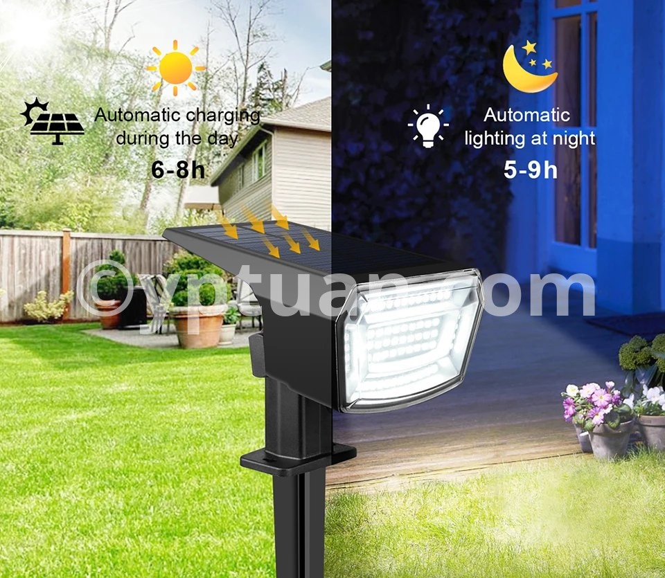 【IP65 Solar Outdoor Spot Lights Waterproof】:Our solar outdoor spotlights are made of high-impact ABS material with an IP65 waterproof design,can work under -20℃~60℃, powerful enough to withstand all kinds of terrible weather such as rain, snow, wind frost, high temperature, etc