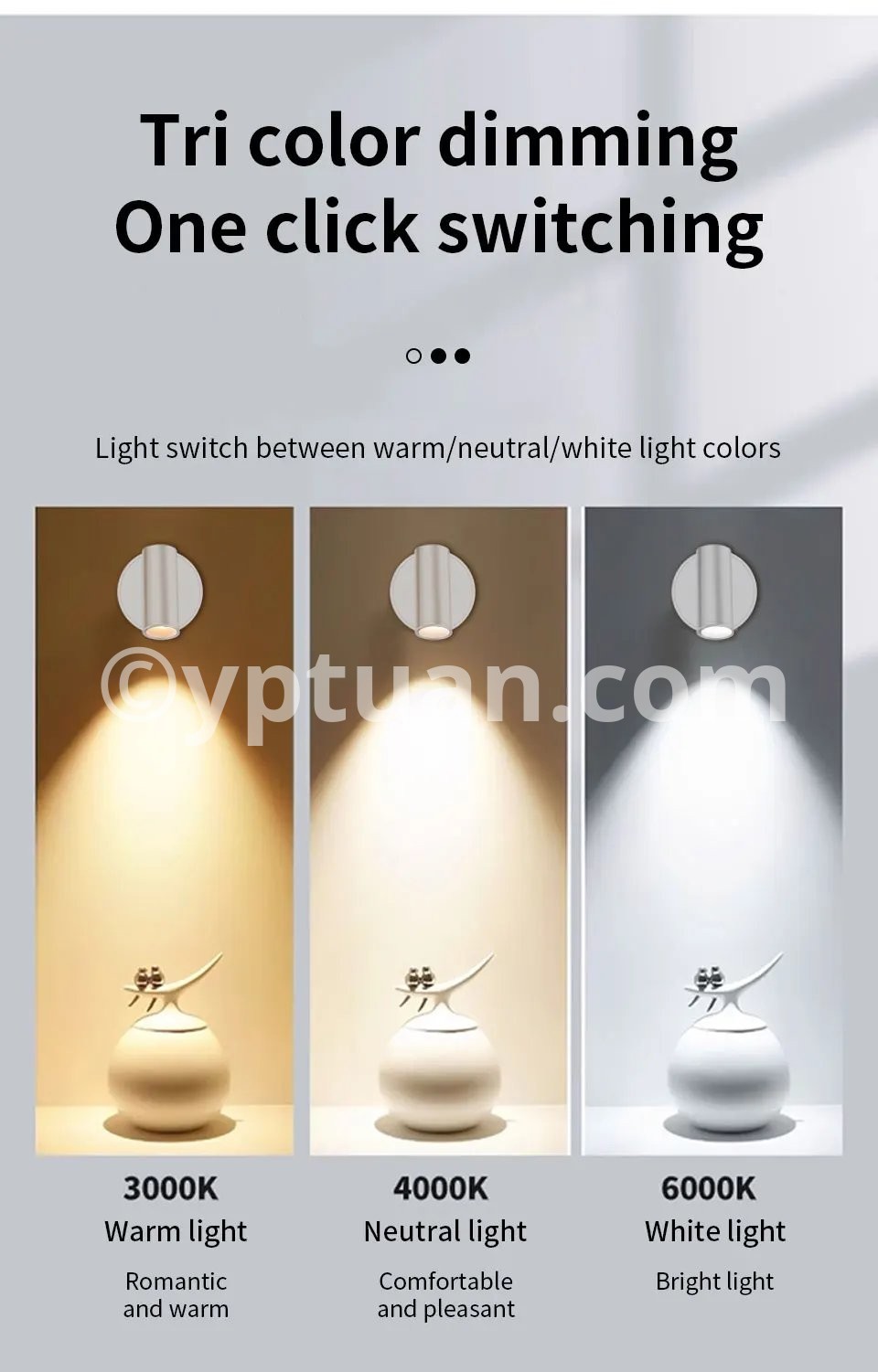 • Modern Style Design :The Bedside Led Wall Lamp features a modern style design, adding a touch of sophistication to any room it's placed in. • Touch On/Off Switch :Equipped with a touch on/off switch, this wall lamp offers convenience and ease of use, no need for traditional switches. • Wall Mounted Installation :Its wall-mounted installation allows for easy setup and can be adjusted to your preferred angle, providing optimal lighting. • USB Rechargeable :This wall lamp comes with USB charging capabilities, making it a practical choice for charging your devices while providing light. • Daily Lighting :Designed for daily lighting needs, this wall lamp offers bright and clear light, enhancing your daily activities. • Multiple Occasion Use This peel and stick sconce lights can be placed anywhere you need extra illumination, without requiring a charging cord. It functions as a table lamp, wall lamp, and even a hand-held flashlight for added convenience. Perfect for use in a variety of settings, including bedside, drawers, cupboards, fridge doors, stairways, hallways, and more. With its portability, there's no limit to where you can use it.