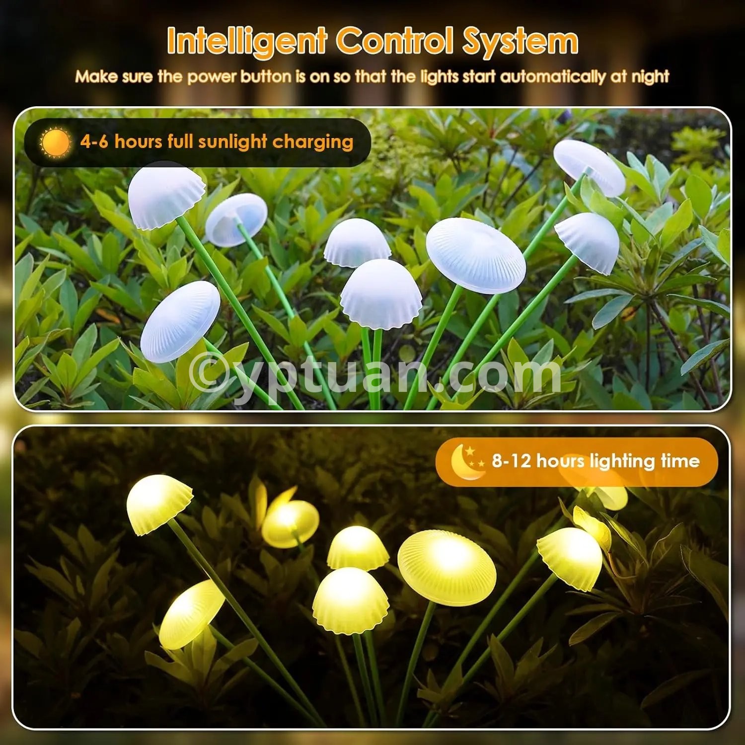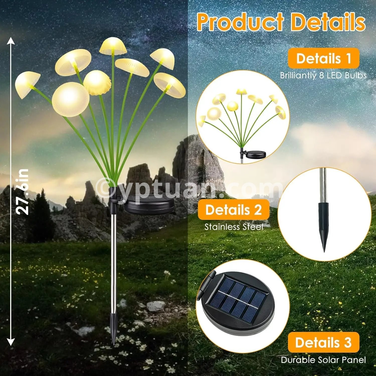 LED solar jellyfish mushroom lamp, used for outdoor courtyard landscape decoration lighting, suitable for lawns, garden terraces Product Name: Solar Garden Lights Material: ABS Light Source: LED Charging Time: 4-8h Working Time: 8-12h Waterproof Level: IP65